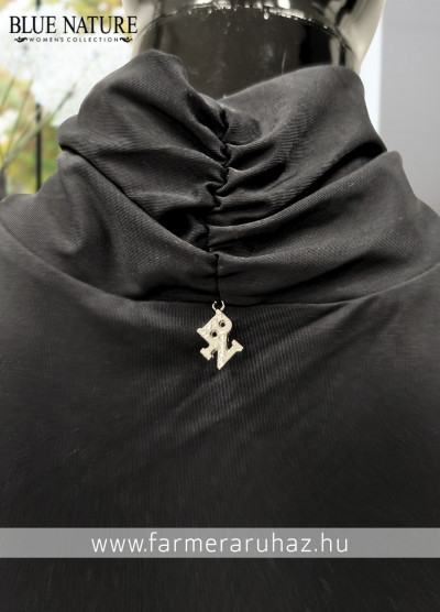 Blue Nature női felső, karcsúsított fazonban, fekete színben, magasított nyakrésszel, csavart díszítéssel, hátán rávarrt fém márkajelzéssel.