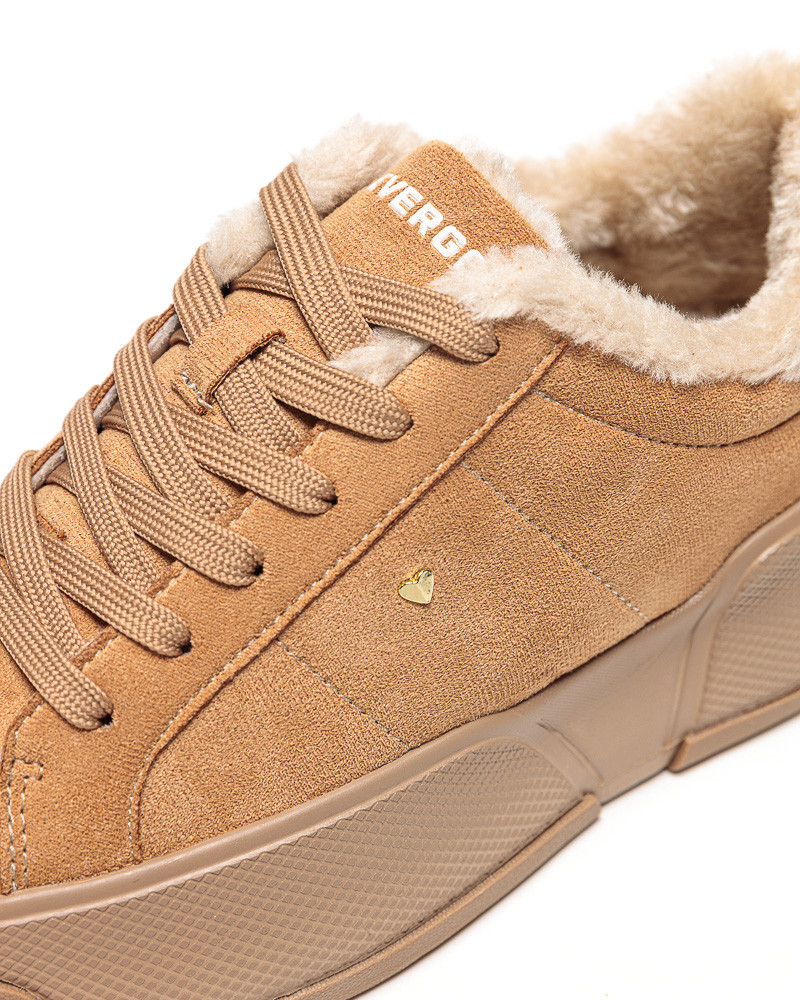 DevergoJeans női cipő, barna színben, belsejében béléssel, fűzős kialakítású felsőrésszel, barna színű gumis talprésszel, oldalán szegecses díszítéssel, nyelvén márkajelzéssel.