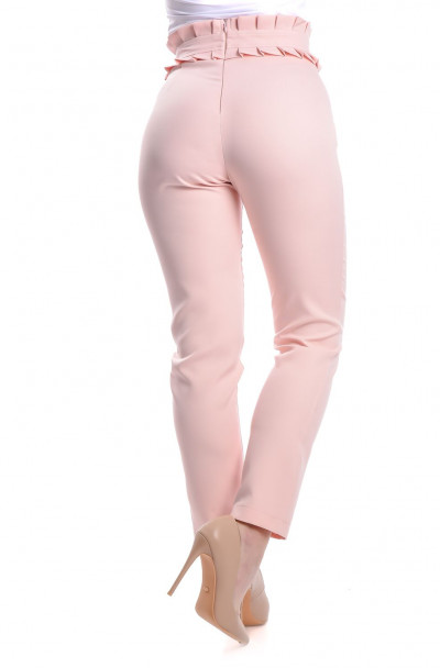 Envy Fashion magas fodros derekú, szűk szárú nadrág púder rózsaszín színben. Hátulján rejtett cipzárral.