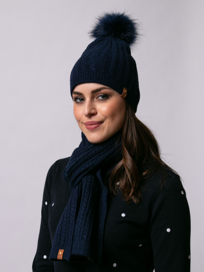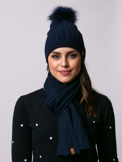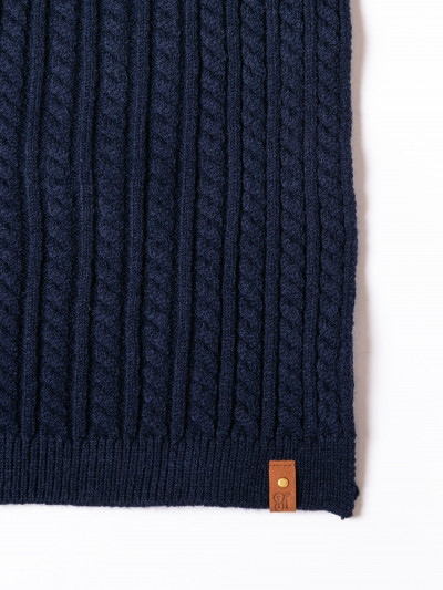 Heavy Tools női kötött sál, sötétkék színben, rávarrt bőrhatású márkajelzéssel az őszi/téli Heavy Tools kollekcióból.