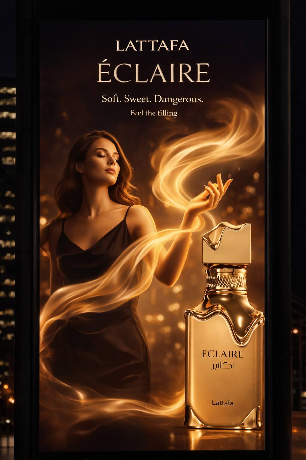 Rövid Leírás: A Lattafa Eclaire a "Folyékony Boldogság". Ez nem egy egyszerű parfüm, hanem egy ínycsiklandó desszert, amit magadra fújhatsz anélkül, hogy híznál tőle. Képzelj el egy frissen sült, krémes süteményt, amire épp most csorgatnak forró karamellát és mézet, mellé pedig egy pohár vaníliás tejet szolgálnak fel. Ez az illat a "Cozy Luxury" (Otthonos Luxus) csúcsa: hihetetlenül édes, tejes és bódító. Vigyázat: olyan finom illata van, hogy legszívesebben beleharapnának a viselőjébe!