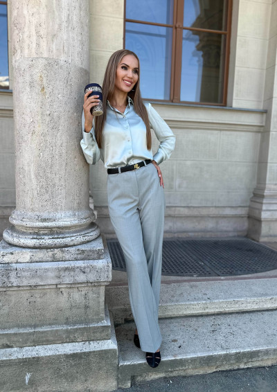 Magenta elegáns pamut-szatén ing, pasztell menta színben, laza fazonban, elején gombos záródással, könnyű muszlin ujjal, márkajelzett gombokkal.