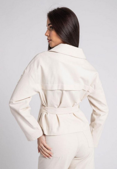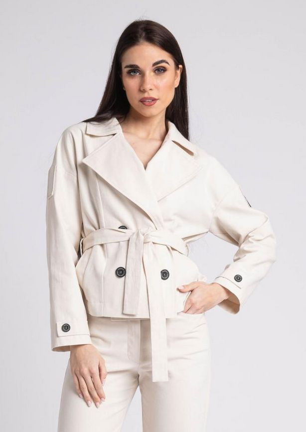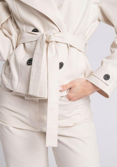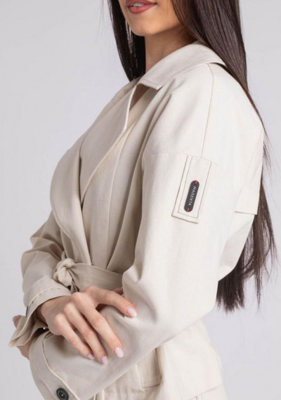 Magenta bő fazonú ballon kabát,natúr színben. Rövid állású, elején dupla gombos záródással, gallérral, derekán saját anyagából megkötővel, zsebekkel. Ujján rávarrt márkajelzéssel.