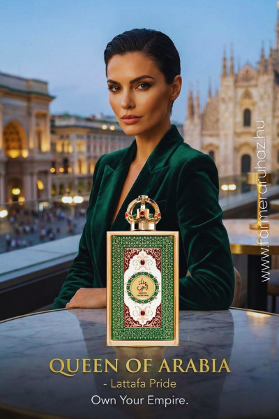 Rövid Leírás: A Lattafa Pride Queen of Arabia egy olyan Női illat, amely a kelet királynőinek méltóságát, titokzatosságát és megingathatatlan magabiztosságát zárja üvegbe. Ez a kompozíció azoknak a hölgyeknek készült, akik nem elégednek meg az átlagossal: a fűszeres, virágos és fás jegyek találkozása egy olyan aurát teremt, amely egyszerre parancsol tekintélyt és csábít ellenállhatatlanul. Ez a parfüm nem kérdez, hanem kijelent – a viselője a társaság középpontja.