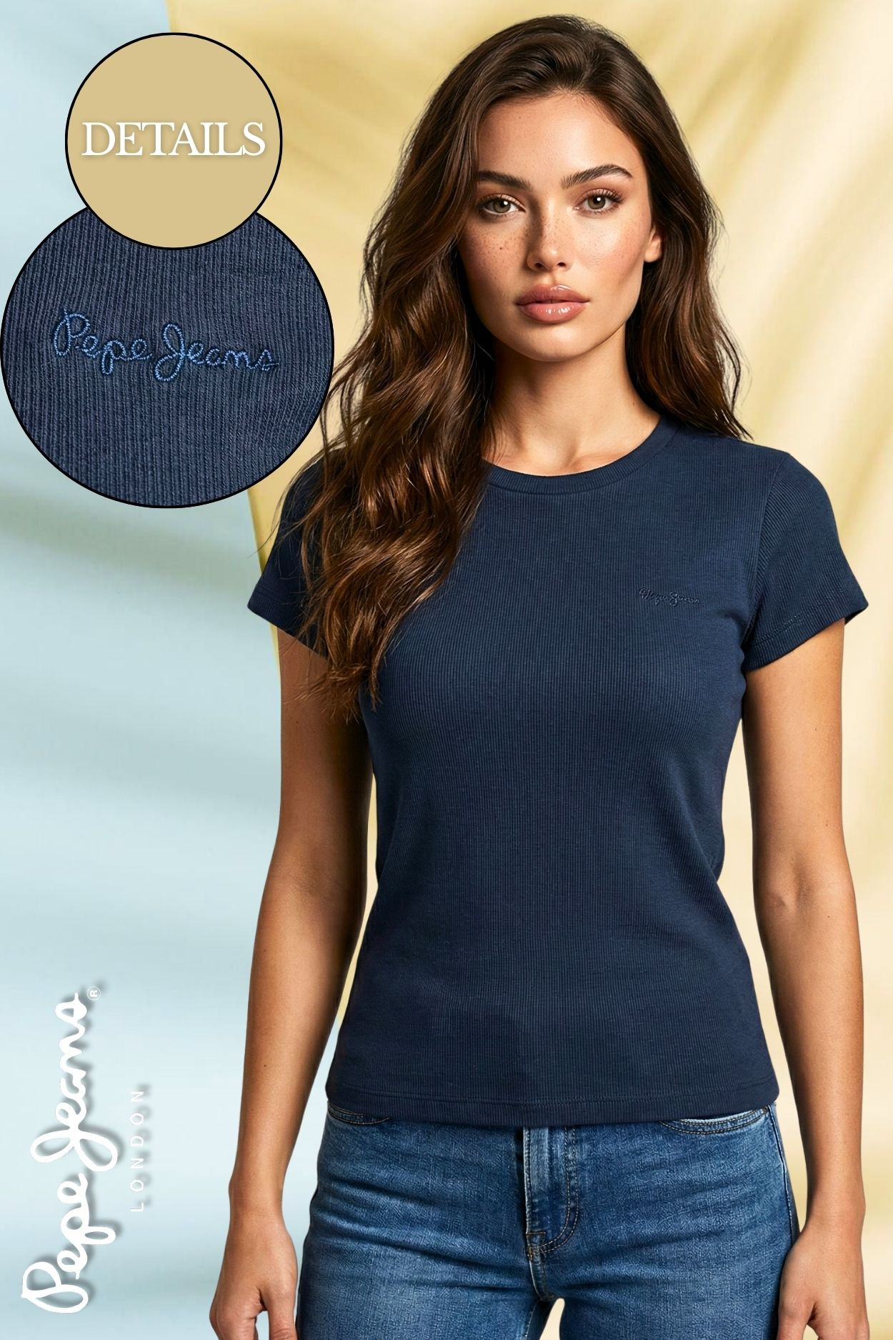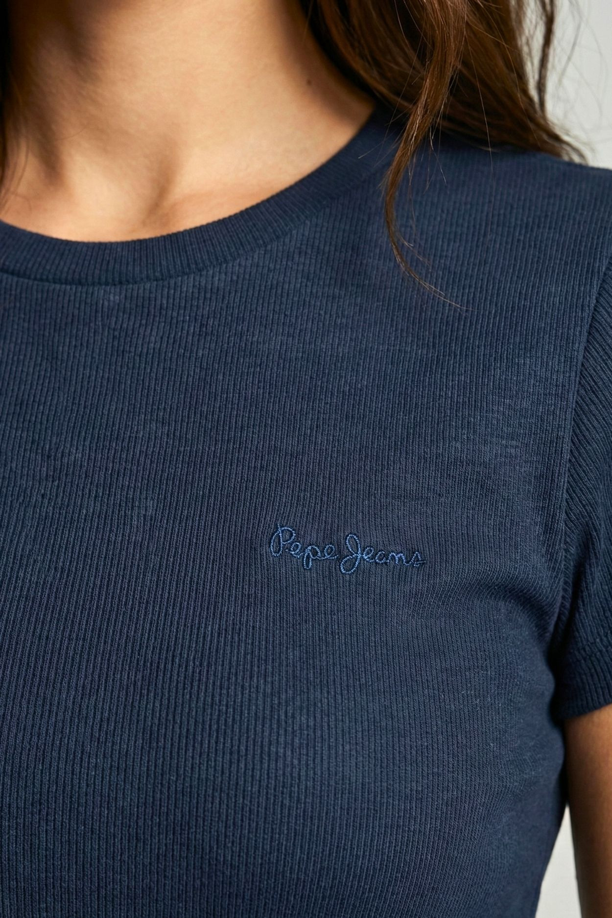 Pepe Jeans női póló, éjkék színben, egyenes szabással, szűk fazonban, kerek nyakkivágással, elején diszkrét hímzett márkajelzéssel.