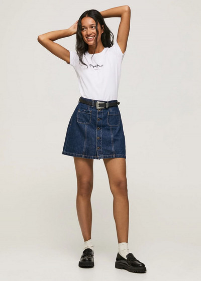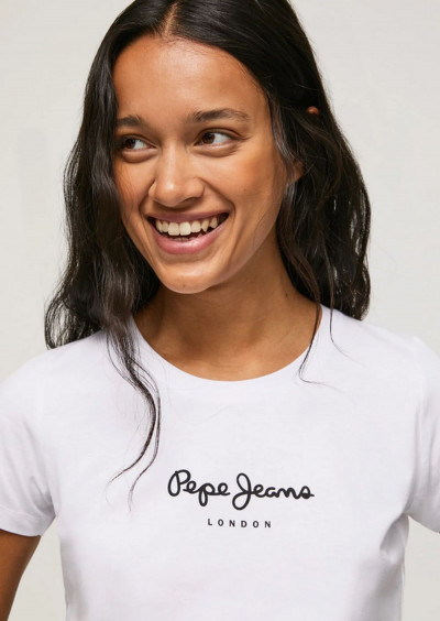 Pepe Jeans női póló, fehér színben, kerek nyakkivágással, elasztikus pamut anyagból, karcsúsított fazonnal, filmnyomott márkajelzéssel.
