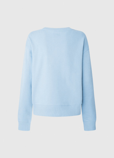 Pepe Jeans oversized fazonú basic pulóver világoskék színben; bordáskötött passzékkal; kerek nyakkivágással; ejtett vállakkal; mell részén hímzett márkajelzéssel.