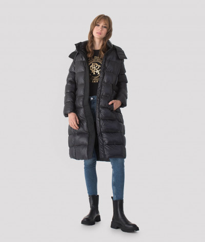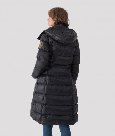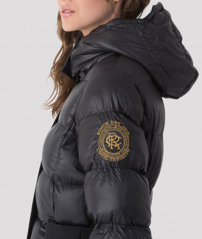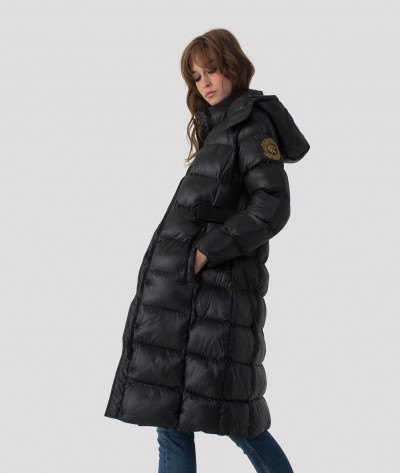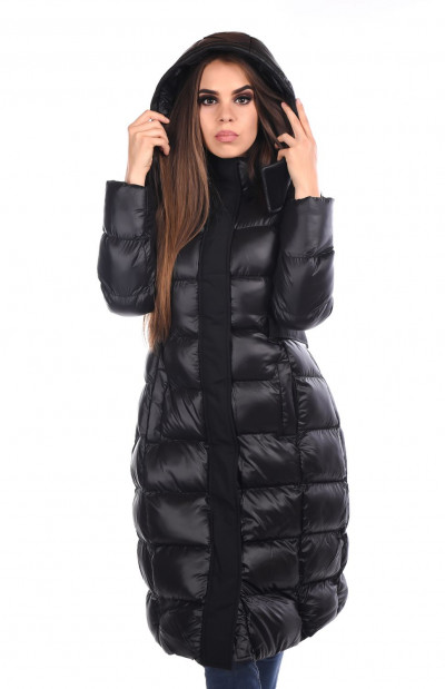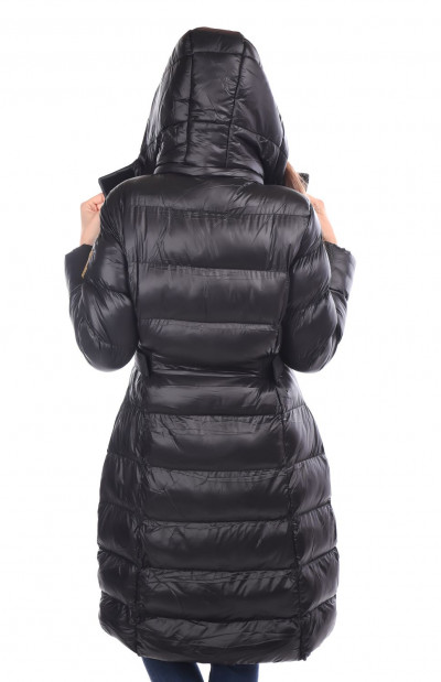 RetroJeans női kabát, fekete színben. Magasított nyakkal, elején cipzáras záródással, oldalzsebekkel. Kapucnija lecipzárolható. Vállán hímzett márkajelzéssel az őszi/téli Retro Jeans kollekcióból.