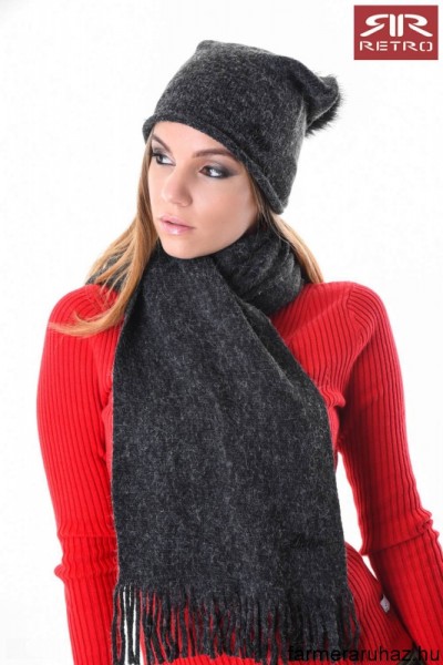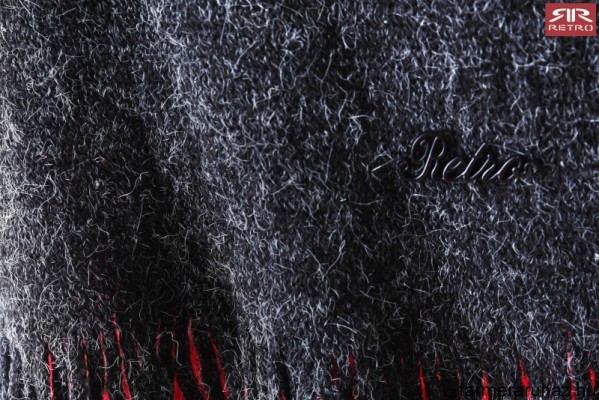 Retro női kötött sál (Megan Scarf), fekete színben; fehér színű szálakkal átszőve; rojtokkal; fém márkajelzéssel az őszi/téli Retro Jeans kollekcióból.