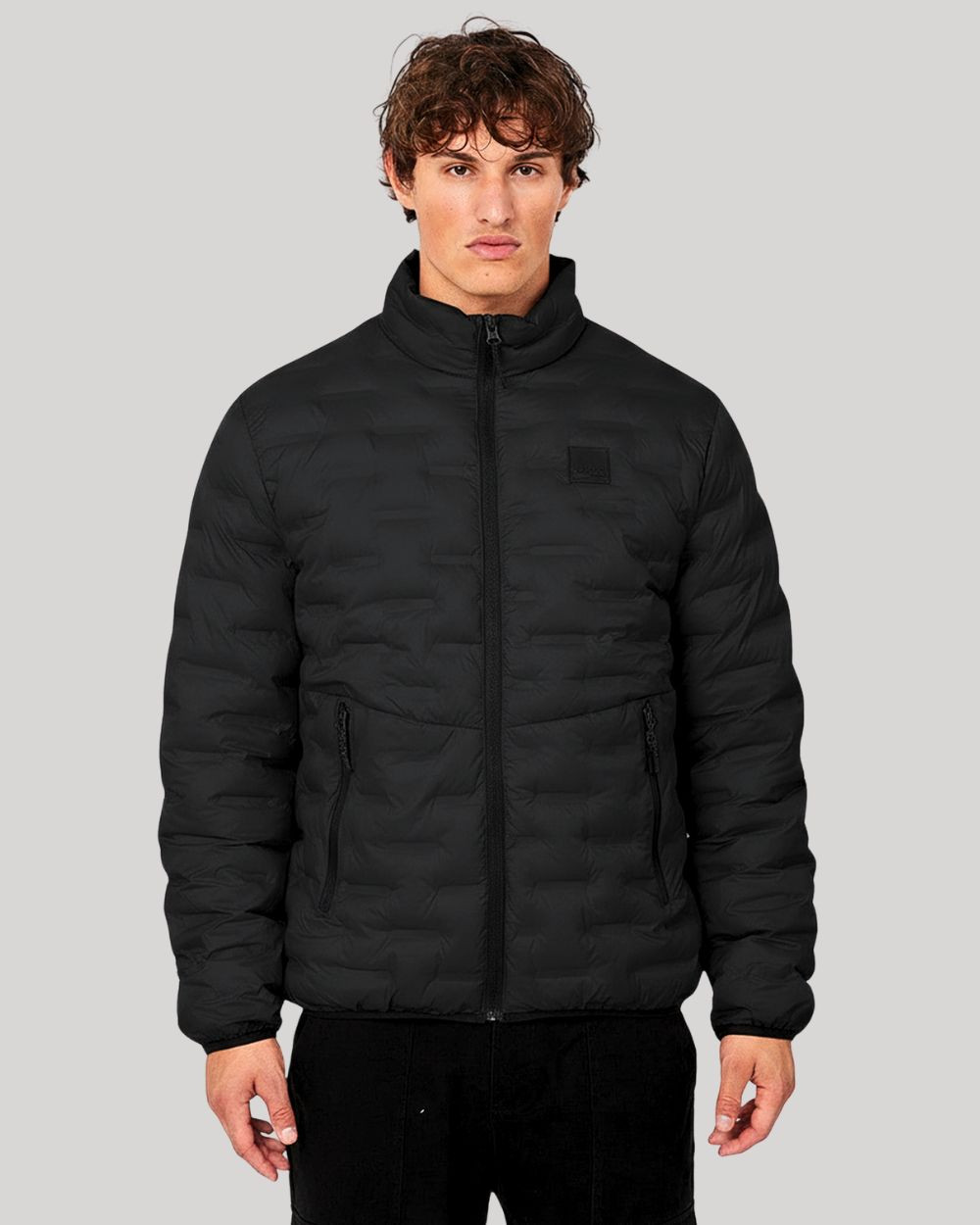 RetroJeans férfi steppelt, szélálló dzseki, fekete színben, állógallérral, cipzáros oldalzsebekkel, elején cipzáras záródással, elején gumírozott márkajelzéssel.