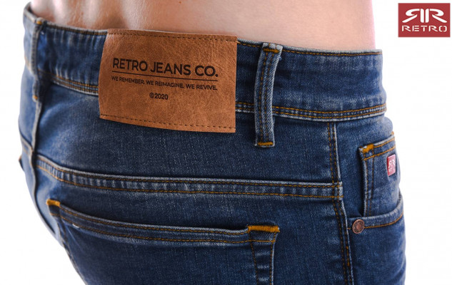 RetroJenas férfi farmernadrág (Rowan Pants), farmerkék (W513) színben, skinny fazonú, cipzáros és gombos záródással, övbújtatós derékrésszel, enyhén koptatott, oldal- és farzsebes, derekán bőrhatású, - farzsebén hímzett, - kis zsebén fém márkajelzéssel a Retro Jeans kollekcióból.