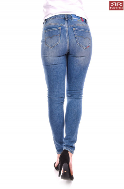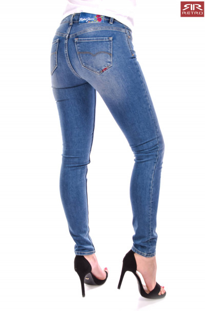 RetroJeans női farmernadrág (Double z), farmerkék színben (W516), cipzáros és gombos záródással, övbújtatós derékrésszel, ötzsebes, skinny fazonban, zsebénél fém, - derekán rávarrt márkajelzéssel a tavaszi/nyári Retro Jeans kollekcióból.