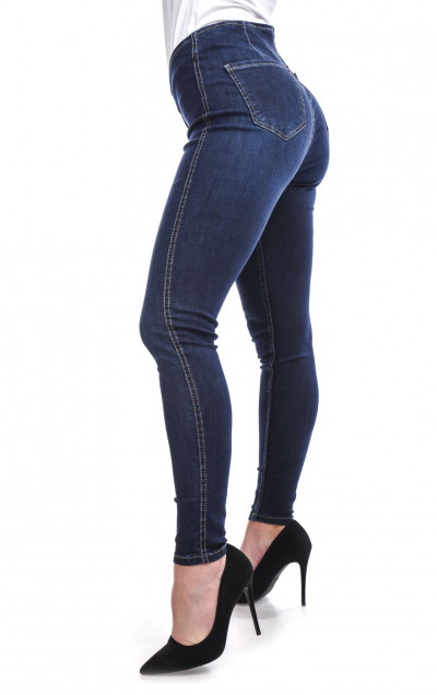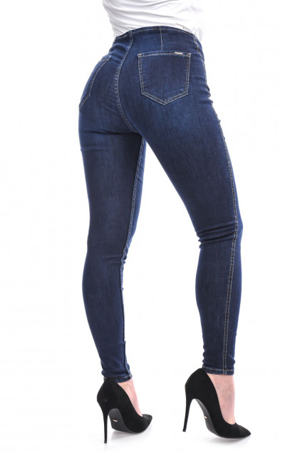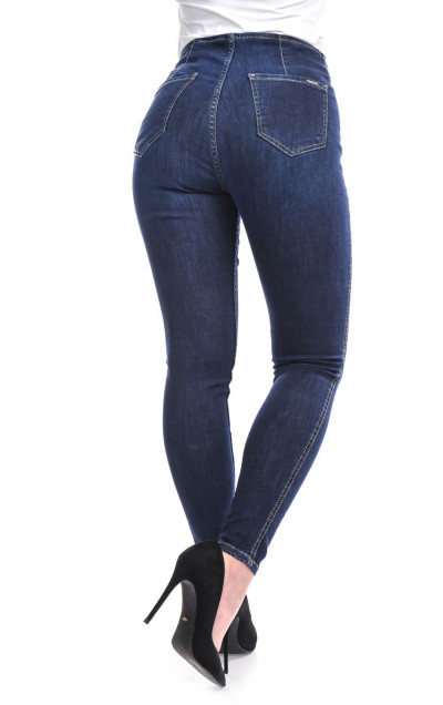 TwisterJeans női farmernadrág - Loretta - sötétkék színben, enyhén koptatott fazonban, farzsebes, elől alacsony hátul magas derekú fazonban, zsebén fém márkajelzéssel a tavaszi/nyári TwisterJeans kollekcióból.