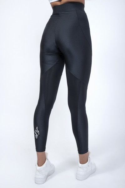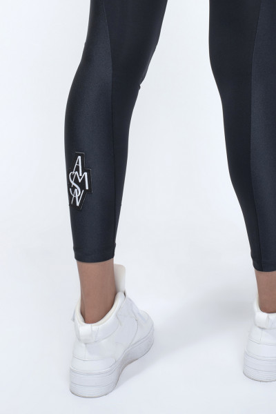 Amnesia Fashion - Eva Prokai - cicanadrág (Detroi) fekete színben, vastag gumis magasított derékkal, szárán díszvarrásokal és rávarrt márkajelzéssel a tavaszi Amnesia kollekcióból.