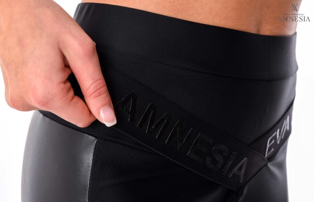 Amnesia Fashion - Eva Prokai nadrág (Szinmo) fekete színben, oldalán bőrbetéttel, gumírozott márkajelzéssel az őszi/téli Amnesia kollekcióból.