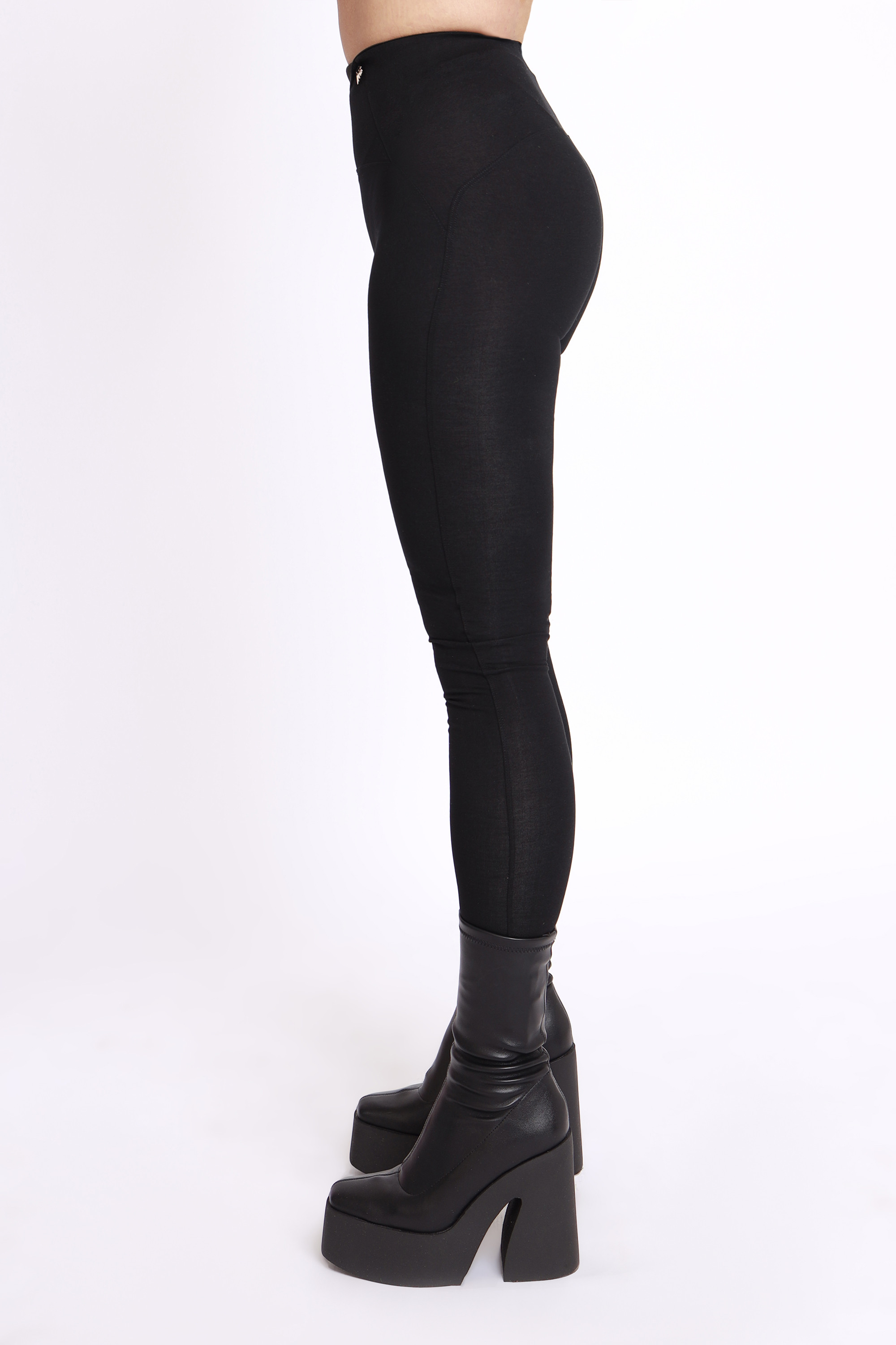 Amnesia Fashion - Eva Prokai cicanadrág fekete színben, magas, - vastag gumis derékkal, rajta kisméretű fém márkajelzéssel a tavaszi Amnesia kollekcióból.