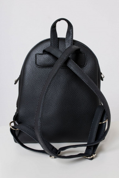 Amnesia Fashion - Eva Prokai műbőr hátizsák, fekete színben, felül egy nagyobb és egy keskenyebb cipáras rekesszel, elején alul egy cipzáras zsebbel, állítható pánttal, elején nyomott márkajelzésselq nq az őszi/téli Amnesia kollekcióból.