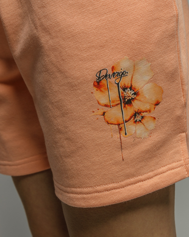 DevergoJeans női melegítő rövidnadrág, narancssárga színben. Gumis és megkötős derékkal, oldalzsebekkel, szárán filmnyomott mintával és márkajelzéssel.