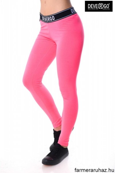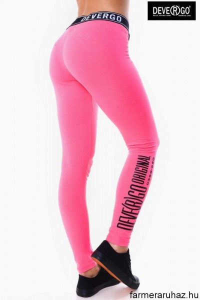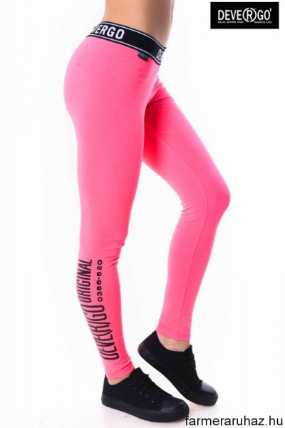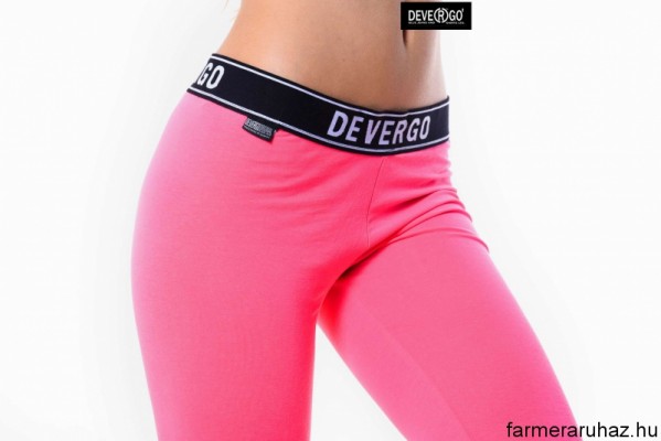 Devergo Jeans női leggings - koral színben, gumis derekán és alján filmnyomott, valamint elején pedig rávarrt márkajelzéssel a 2017. őszi DevergoJeans kollekcióból.