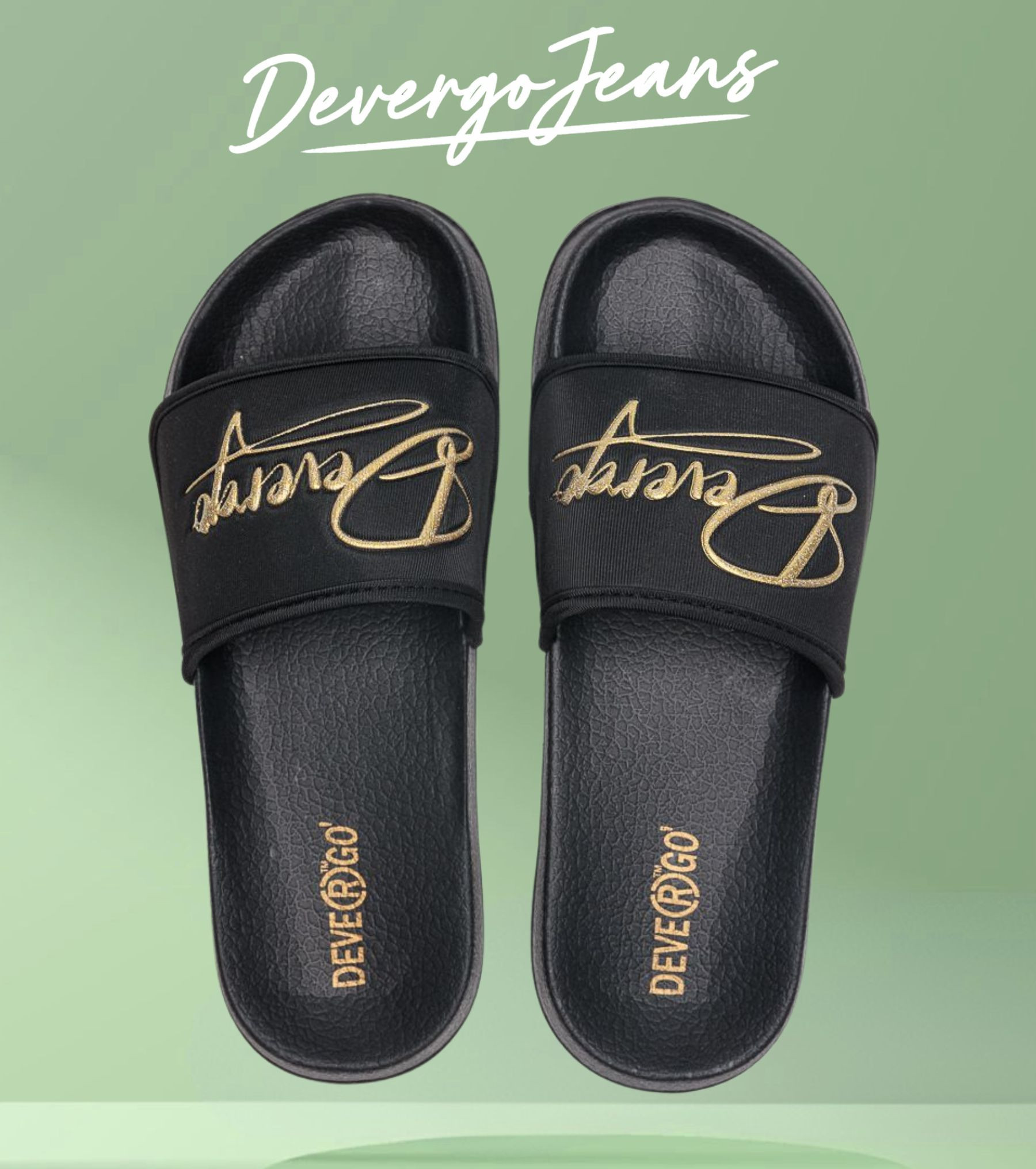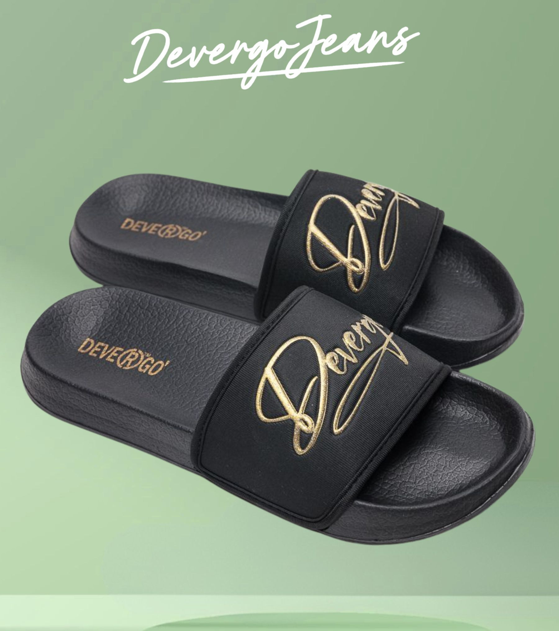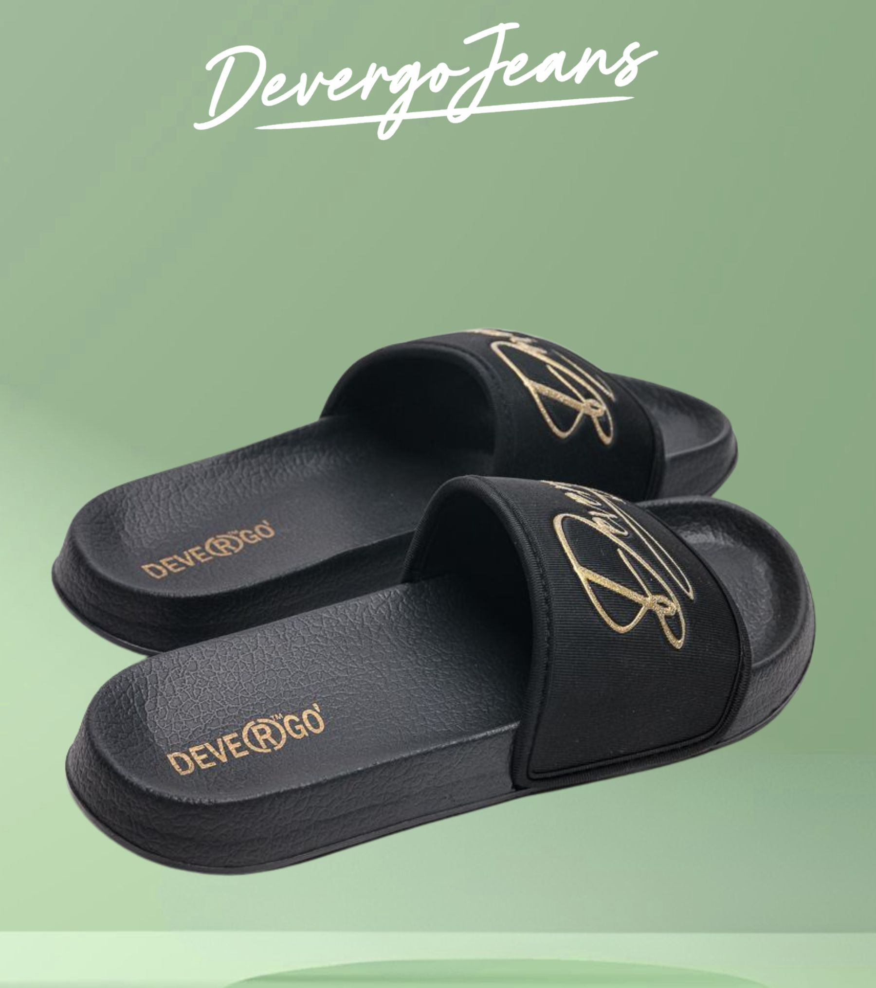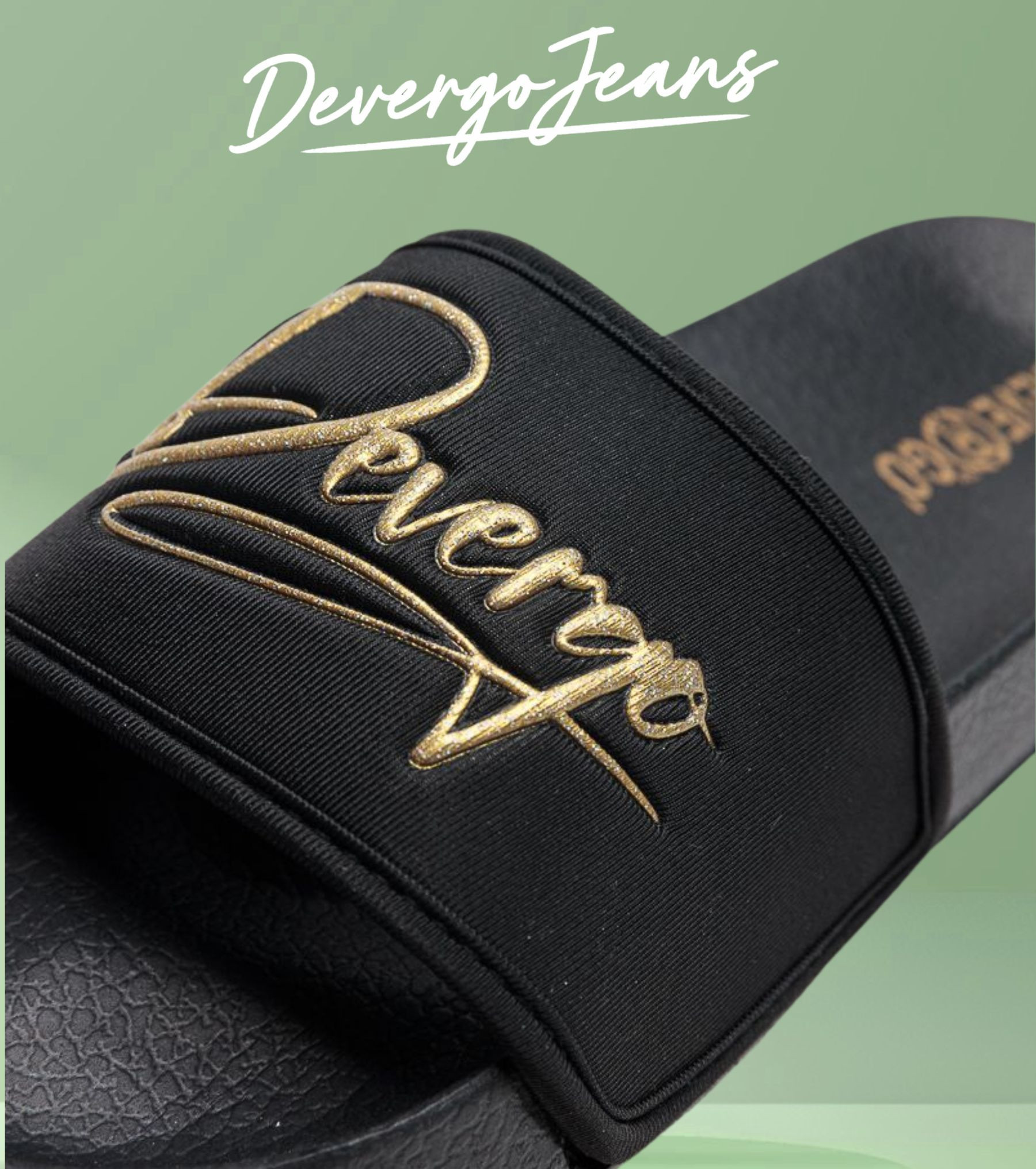 Ez a női papucs ötvözi a kényelmet és a dizájnt. A puha lycra felsőrész kellemesen illeszkedik a lábhoz, míg a könnyű EVA talp egész napos kényelmet biztosít. Az arany színű, csillámos DEVERGO aláírás a pánton stílusos megjelenést nyújt, akár a városban, akár a parton viseled.