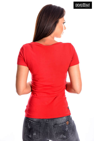 Devergo Jeans női póló, piros színben, oldalán rávarrt- elején filmnyomott márkajelzéssel az őszi/téli DevergoJeans kollekcióból.