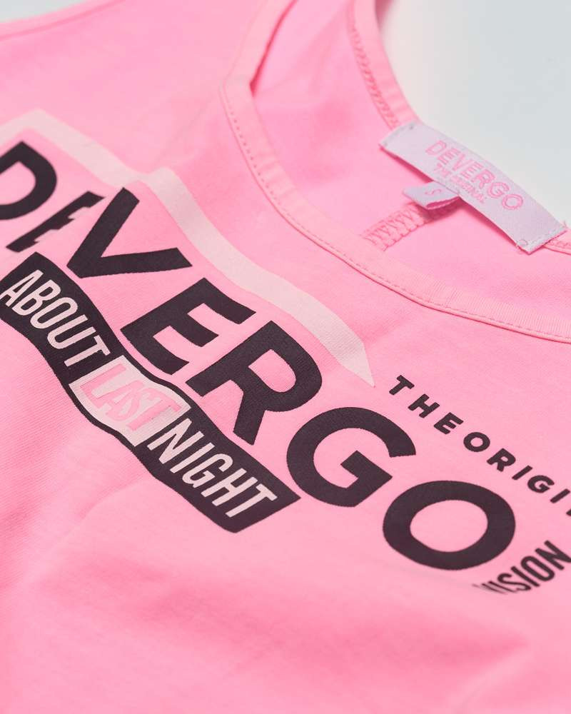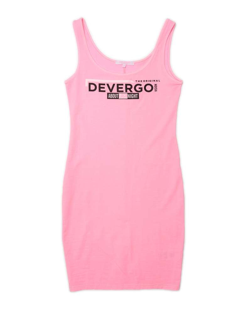 Devergo Jeans női ruha, rózsaszín színben, elején filmnyomott márkajelzéssel a nyári DevergoJeans kollekcióból.