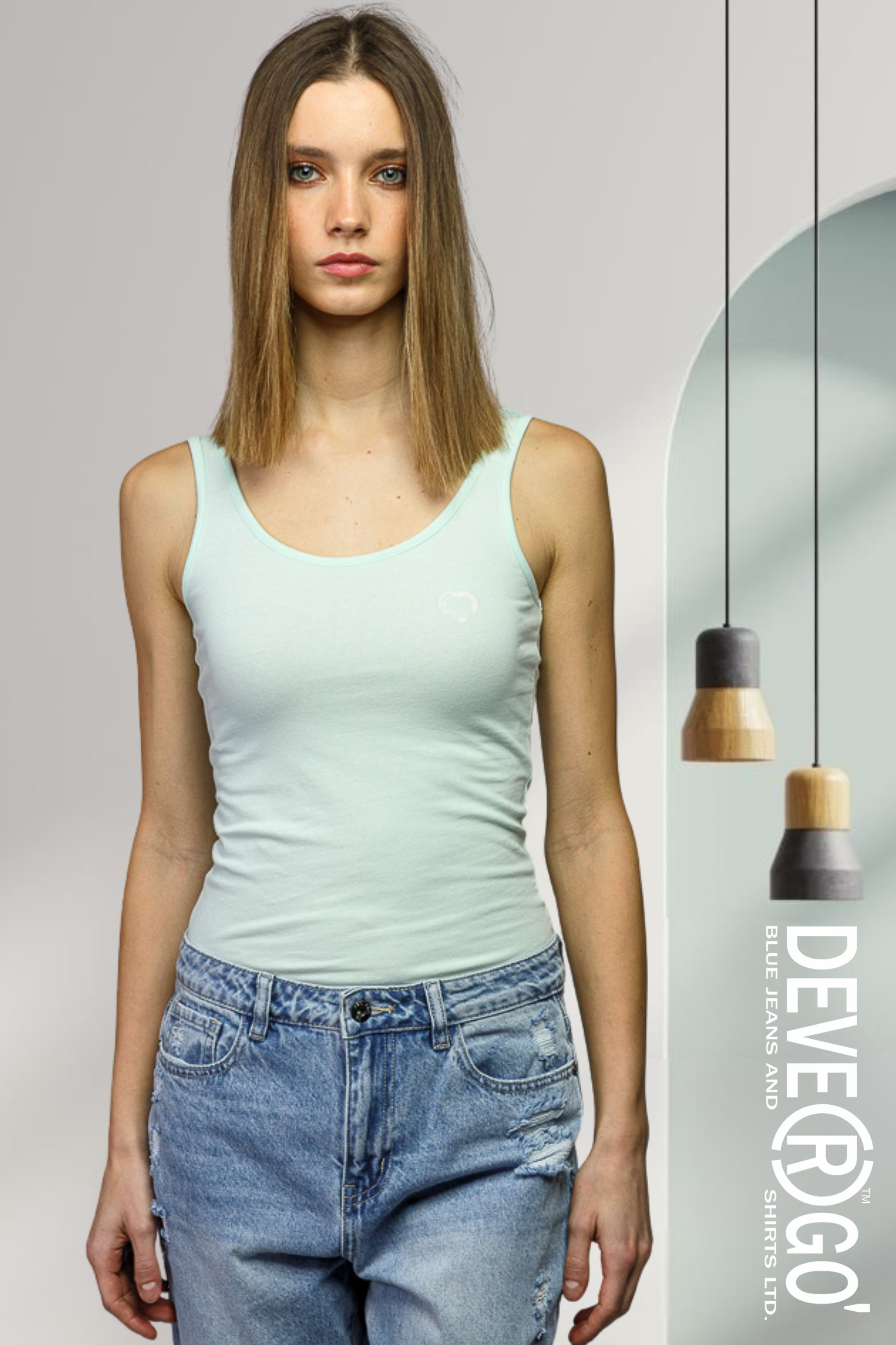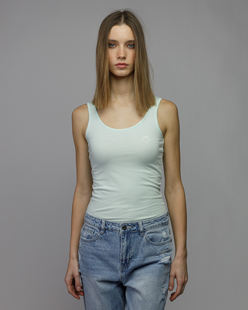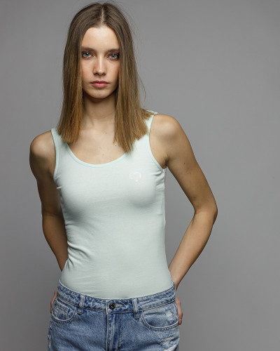 DevergoJeans női trikó menta színben, mell részén márkajelzéssel.