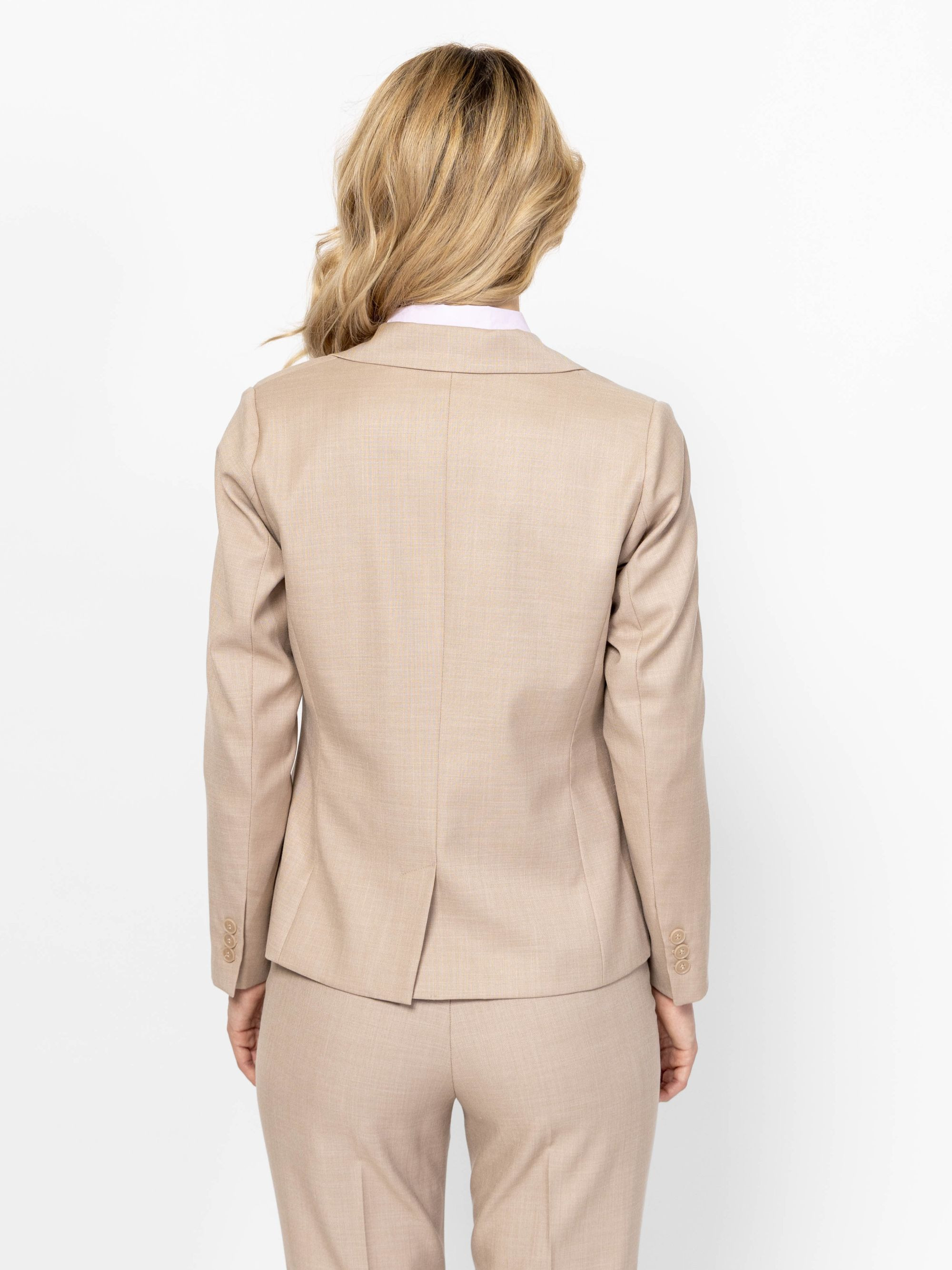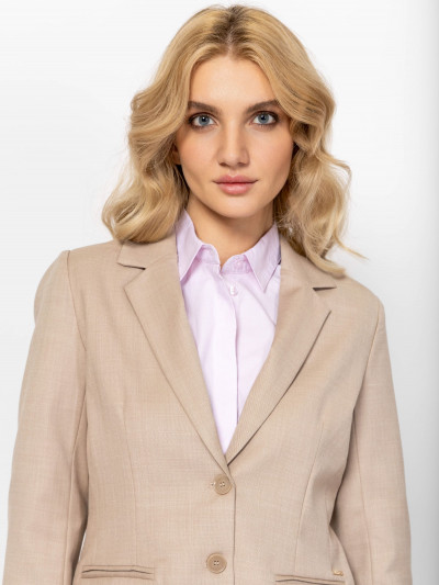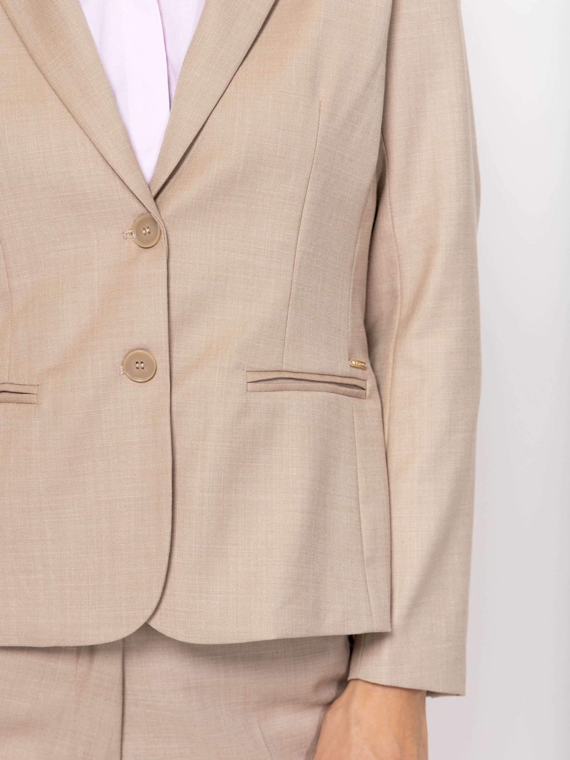 Heavy Tools női blézer, bézs színben, klasszikus két gombos fazonnal, slim fit szabással, elején zsebekkel, hátán hasítékkal, zsebe felett fém márkajelzéssel.