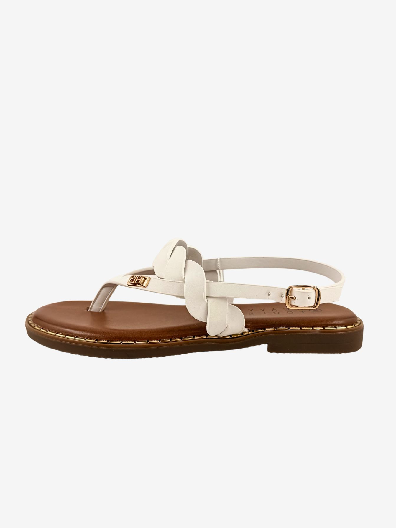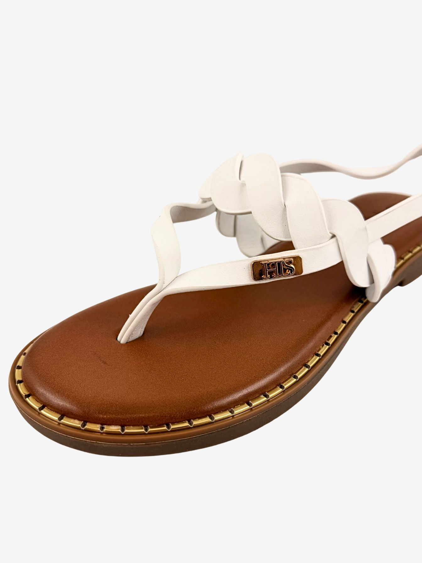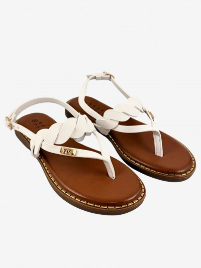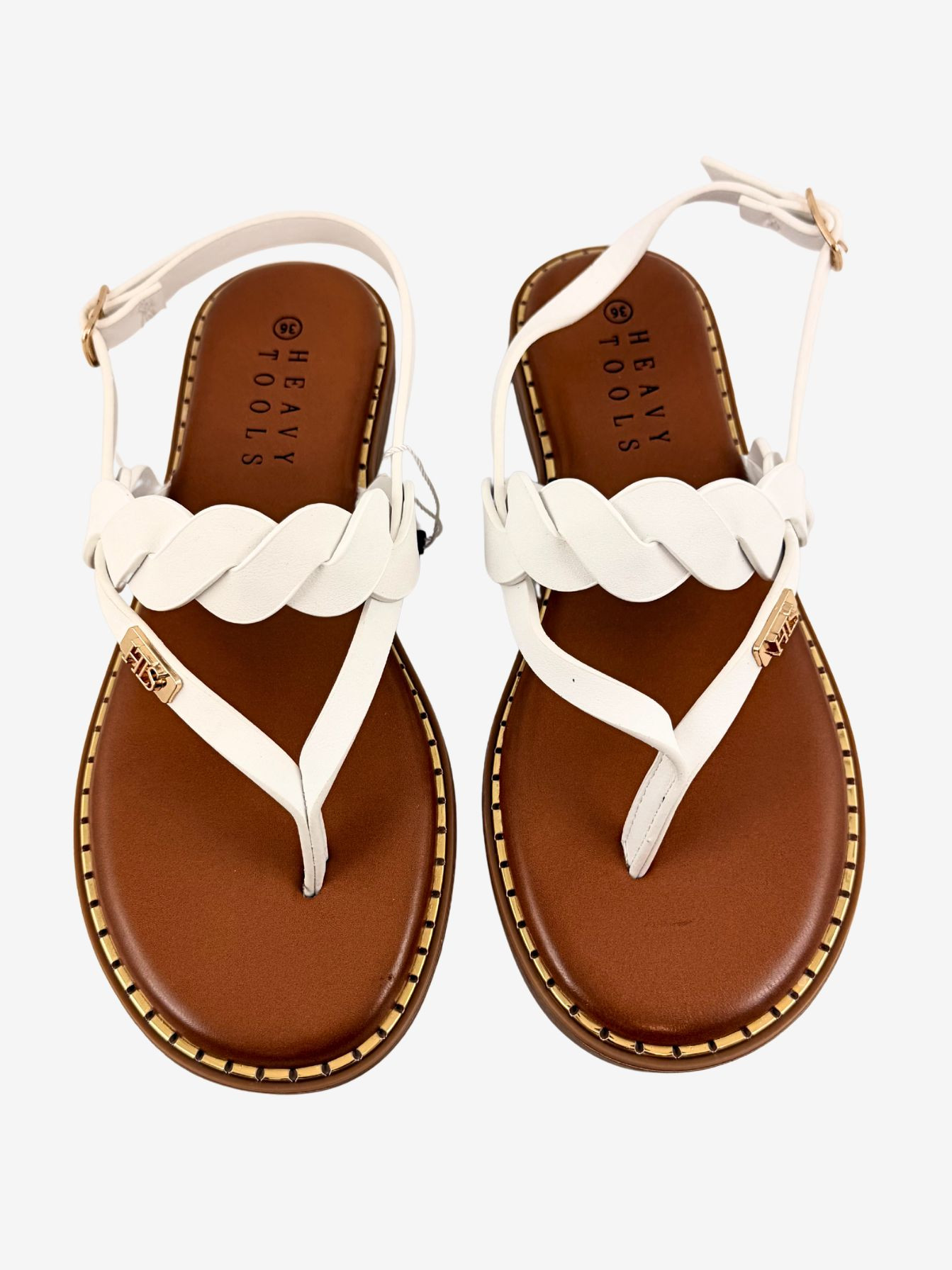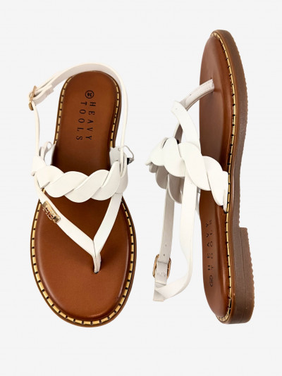 Heavy Tools női szandál, fehér színben, lábujj közes kialakítással, 2 sima és egy fonott hatású kereszt pánttal. Több méretben állítható záródással. pántján fém márkajelzésel.