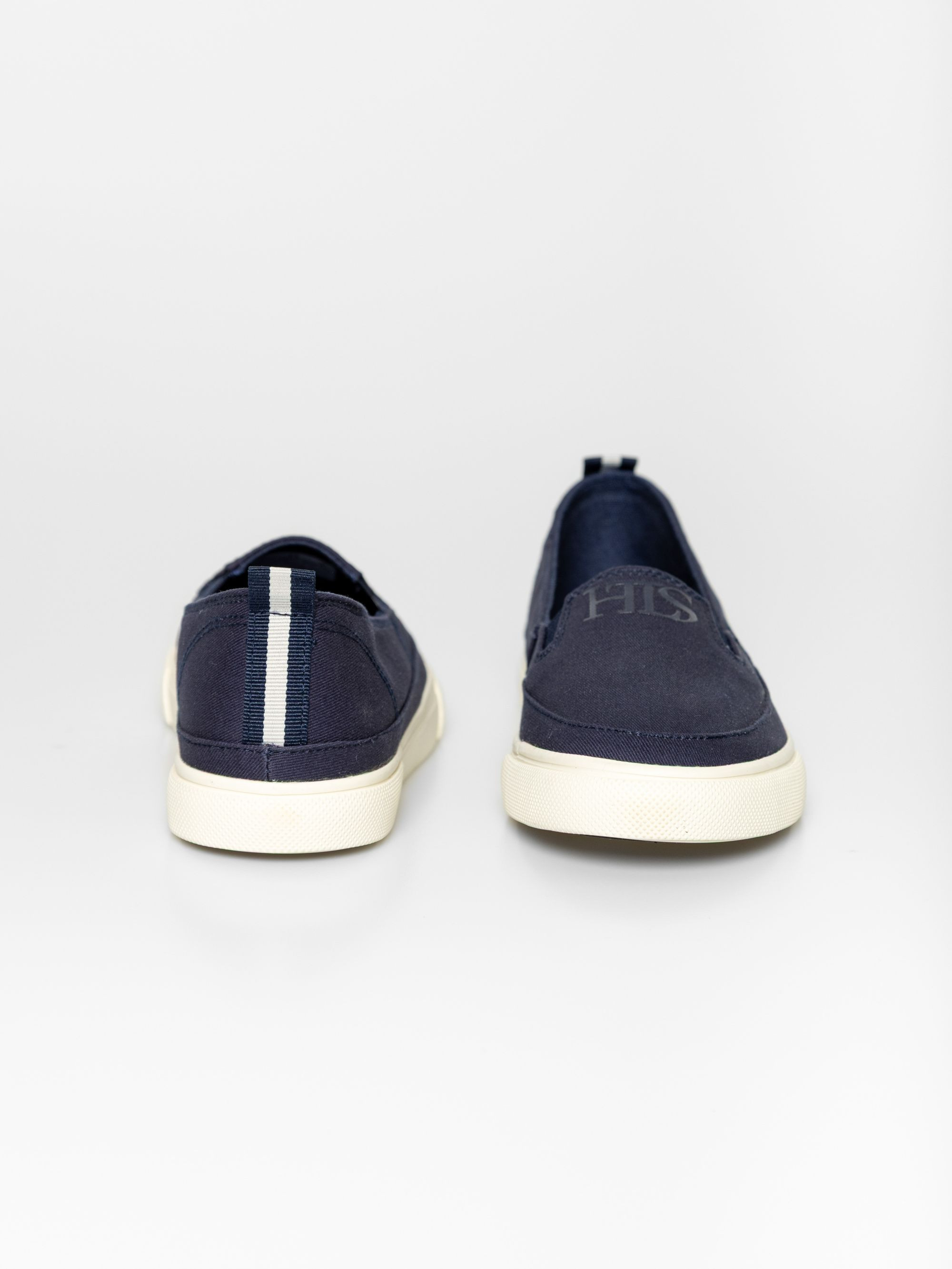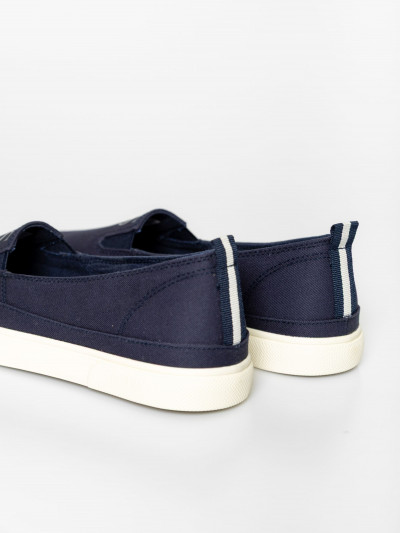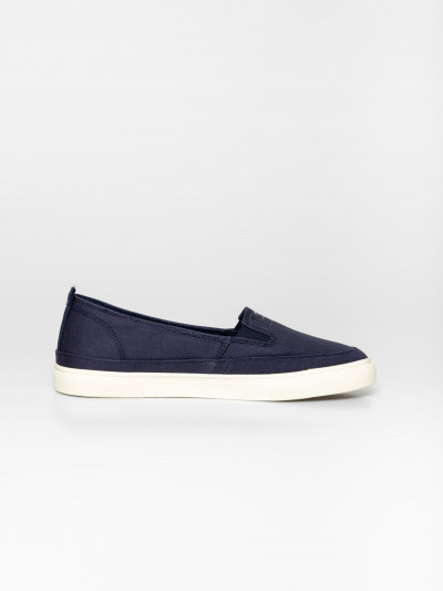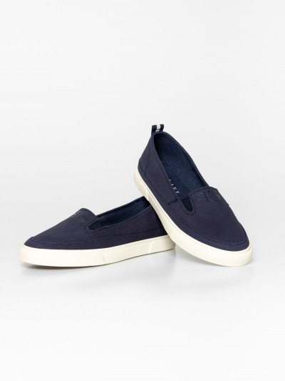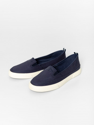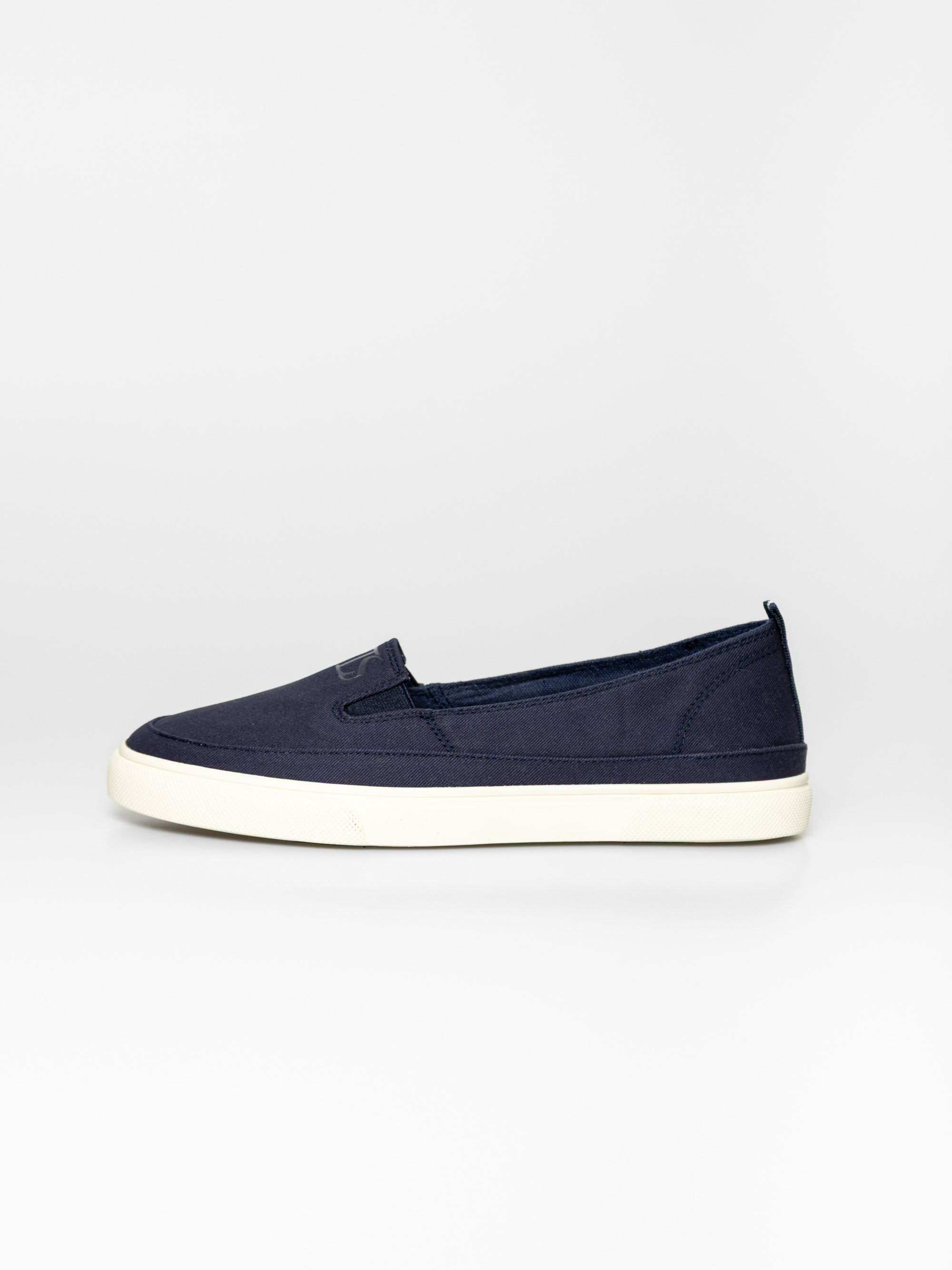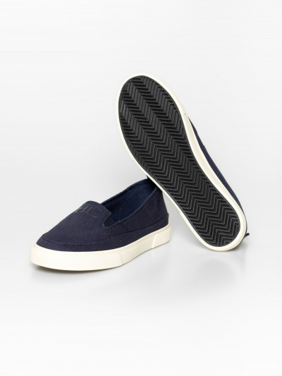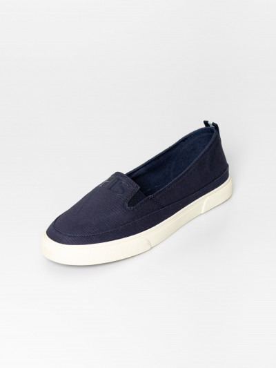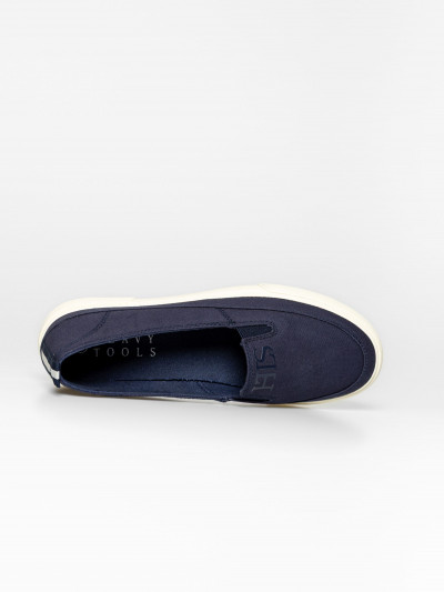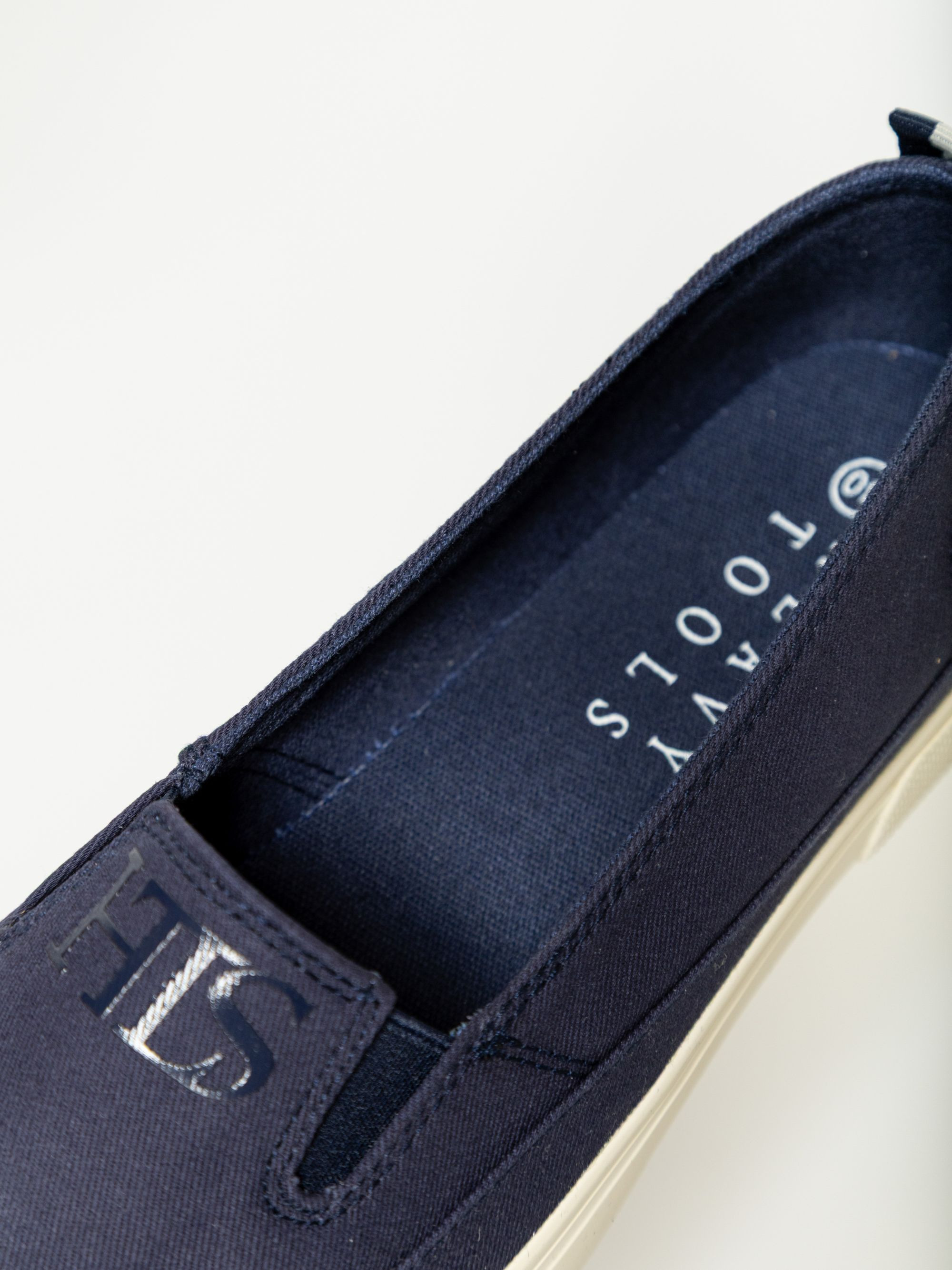 Heavy Tools női vászoncipő, slip on kialakítással, sötétkék színben. Csúszásgátló gumi talppal, felső részén két oldalt gumis betéttel és szín azonos filmnyomott márkajelzéssel.