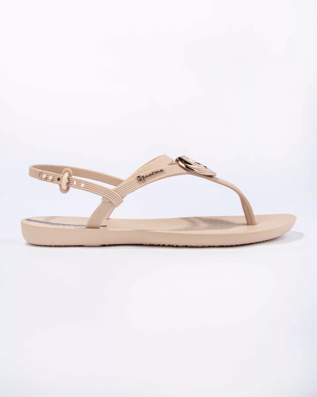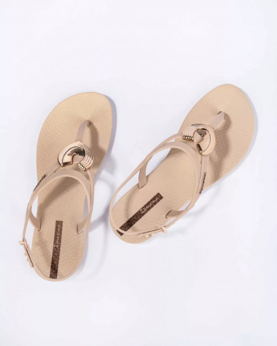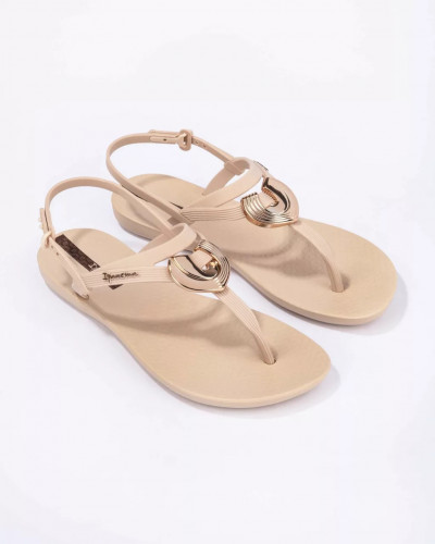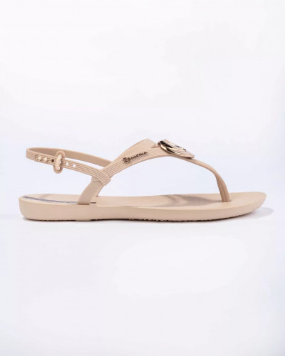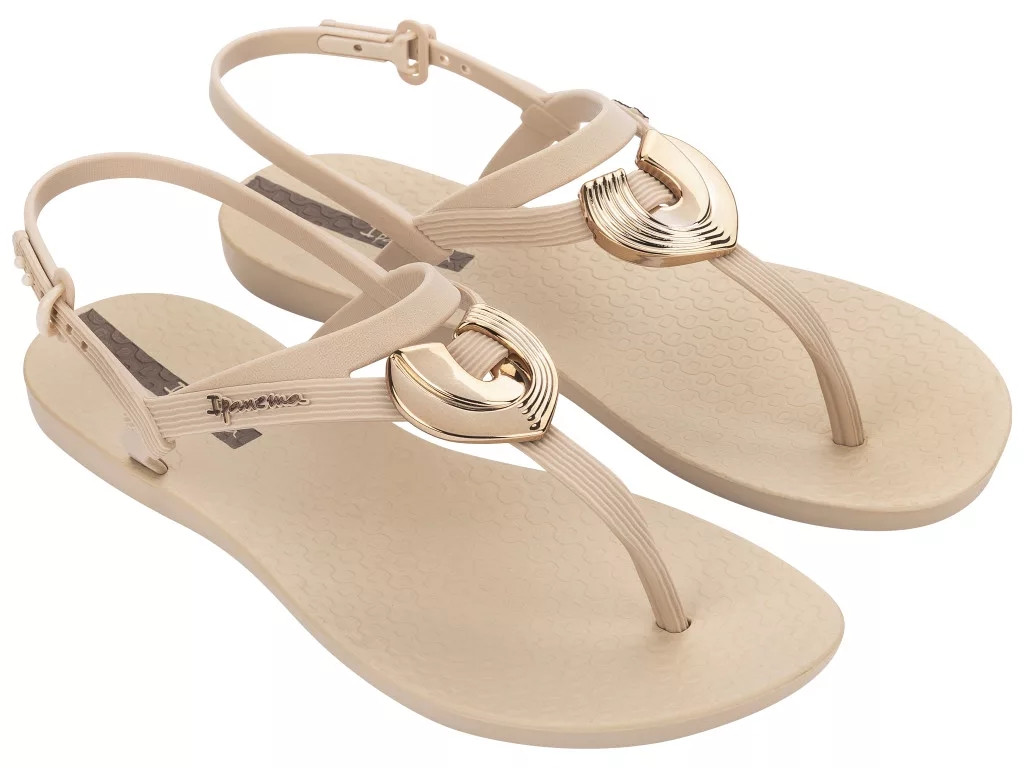 Ipanema könnyed kialakítású, tartós műanyag szandál bézs színben; kényelmes talpkialakítással; állítható pántokkal; arany színű dekoracióval; dombornyomott márkajelzéssel.