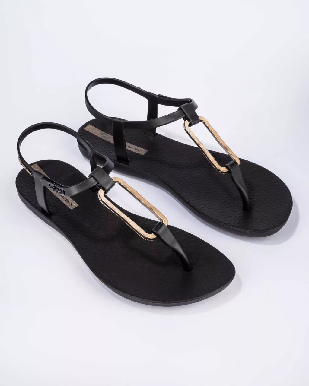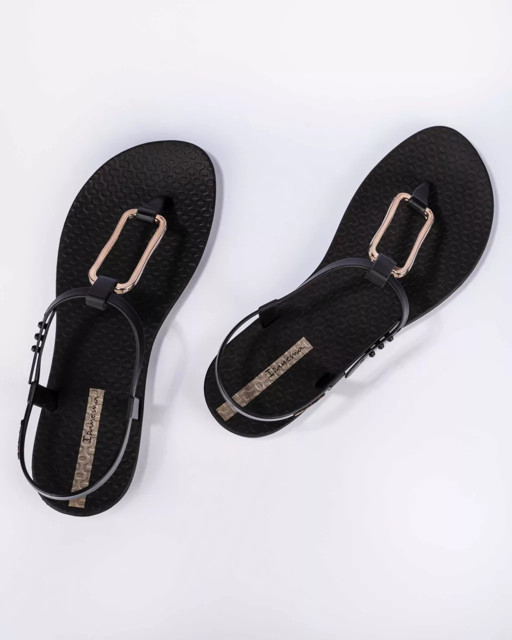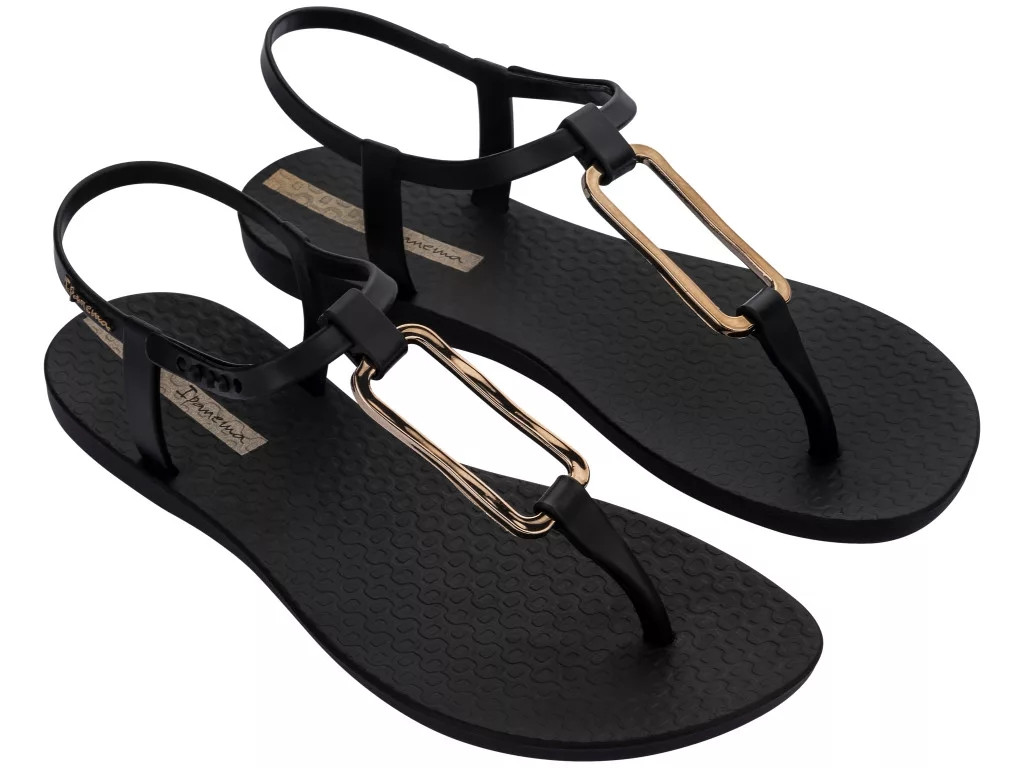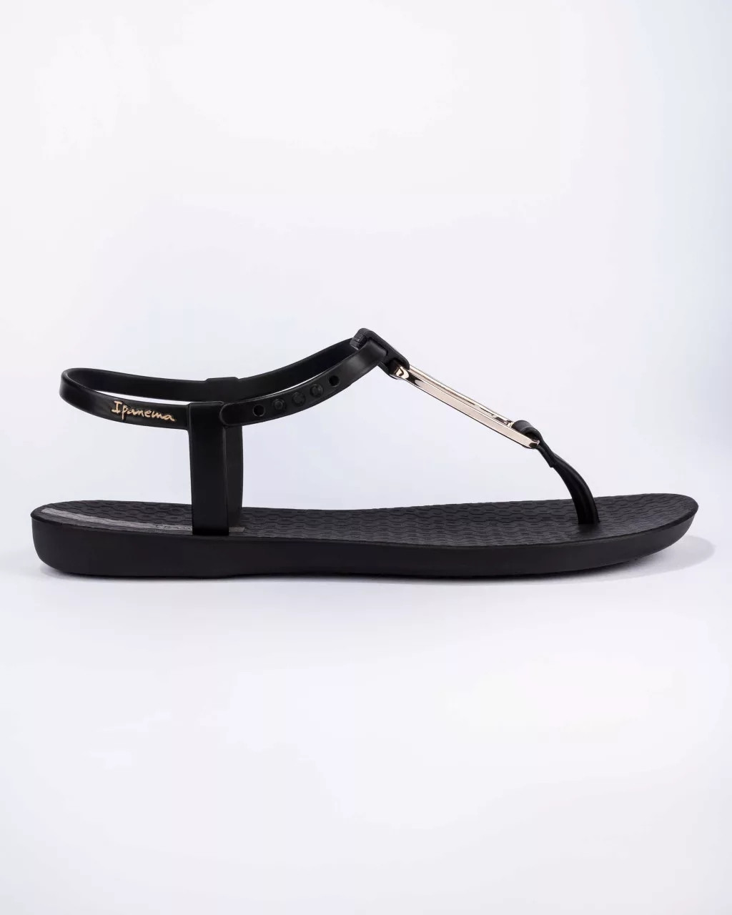 Ipanema könnyed kialakítású, tartós műanyag szandál fekete színben; kényelmes talpkialakítással; állítható pánttal; arany színű dekorációval; dombornyomott márkajelzéssel.