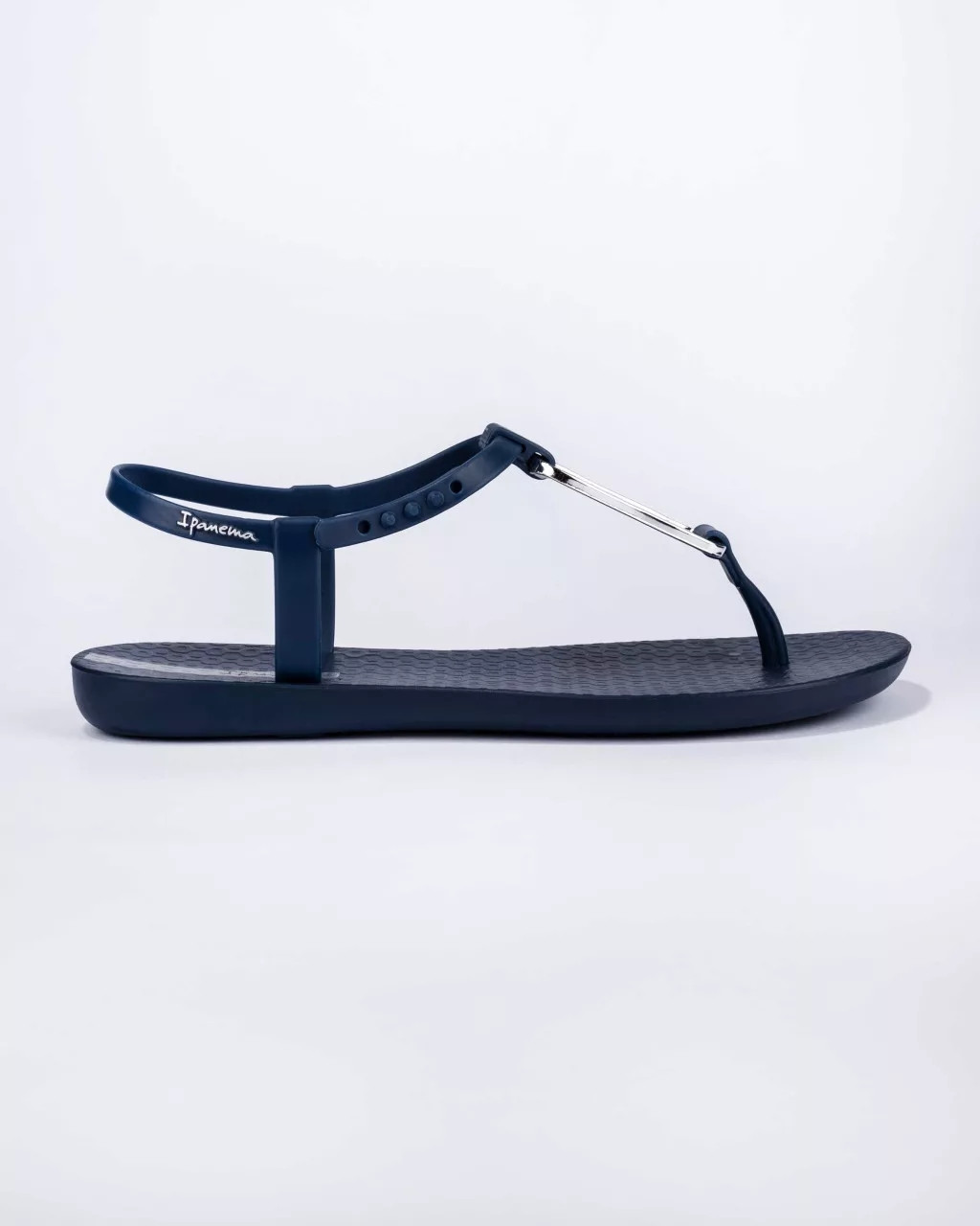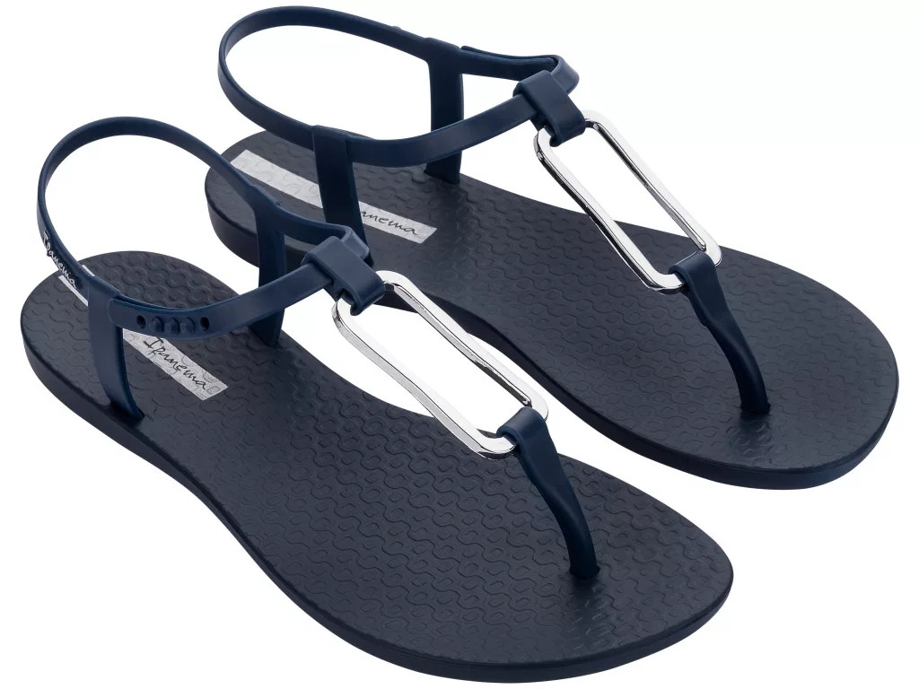 Ipanema könnyed kialakítású, tartós műanyag szandál sötétkék színben; kényelmes talpkialakítással; állítható pánttal; arany színű dekorációval; dombornyomott márkajelzéssel.