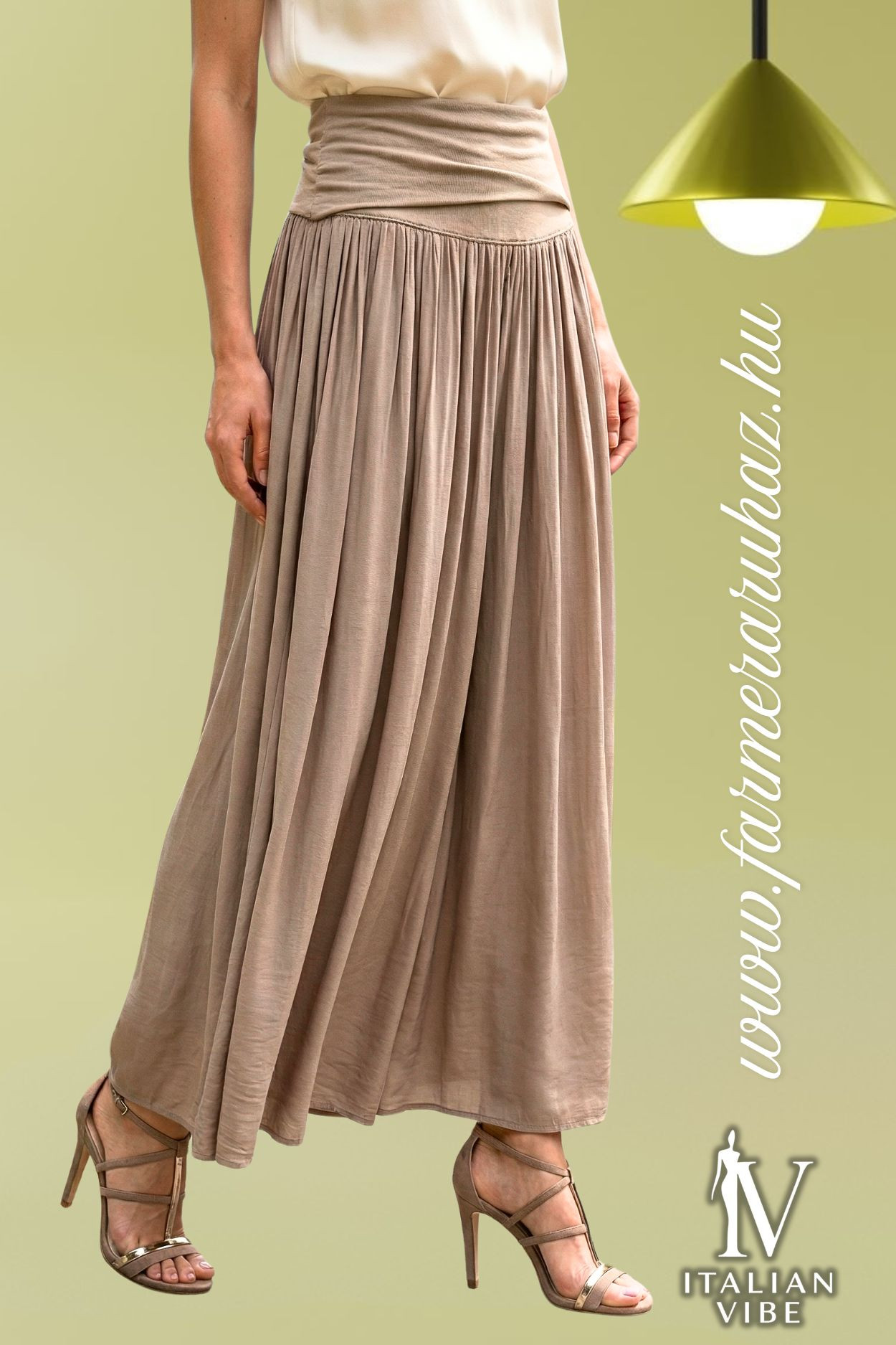 Italian Vibe női szoknya, fangó színben, lehajtott elasztikus derékrésszel, dupla anyaggal.
