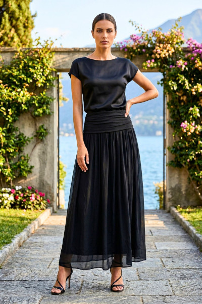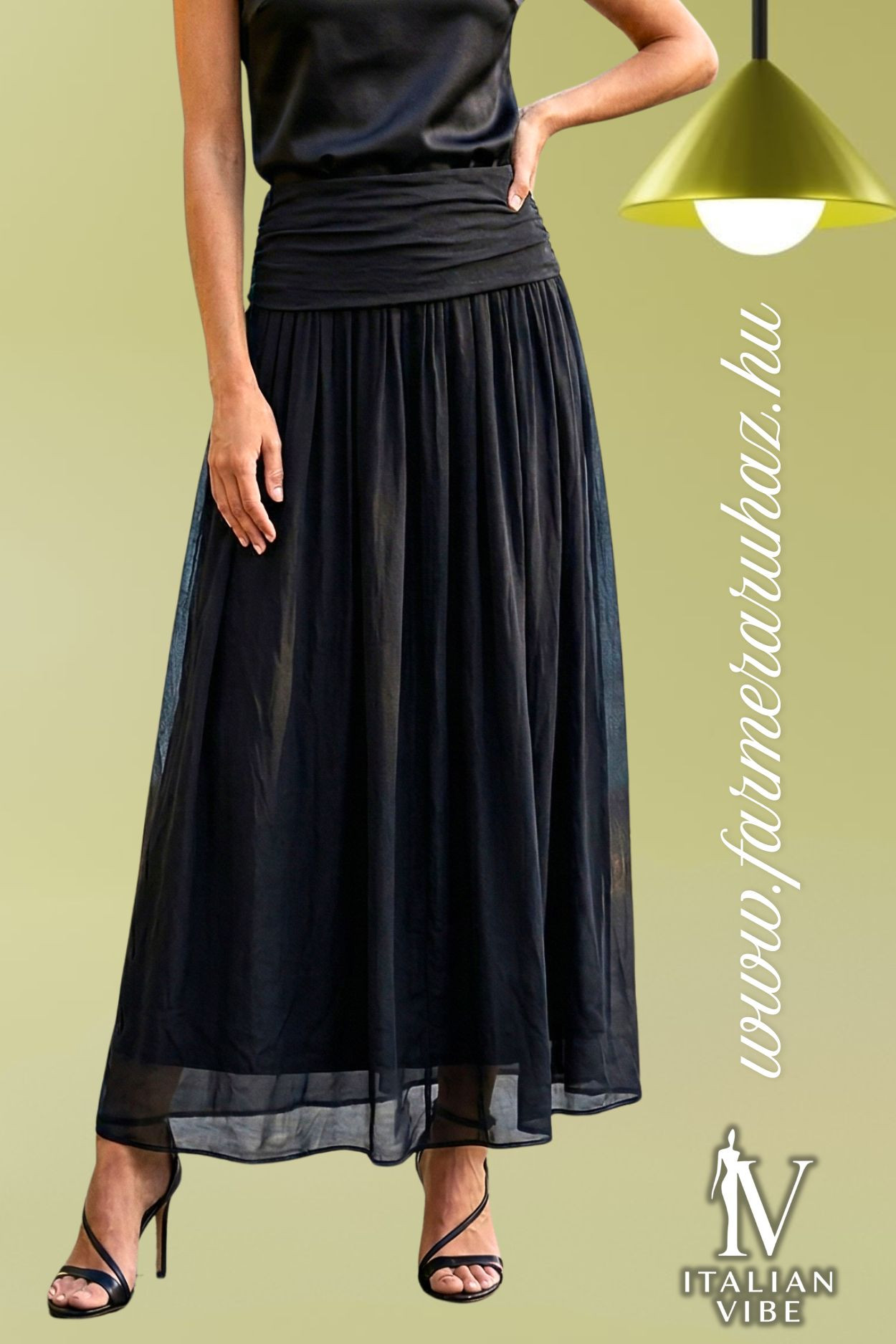 Italian Vibe női szoknya, fekete színben, lehajtott elasztikus derékrésszel, dupla anyaggal.