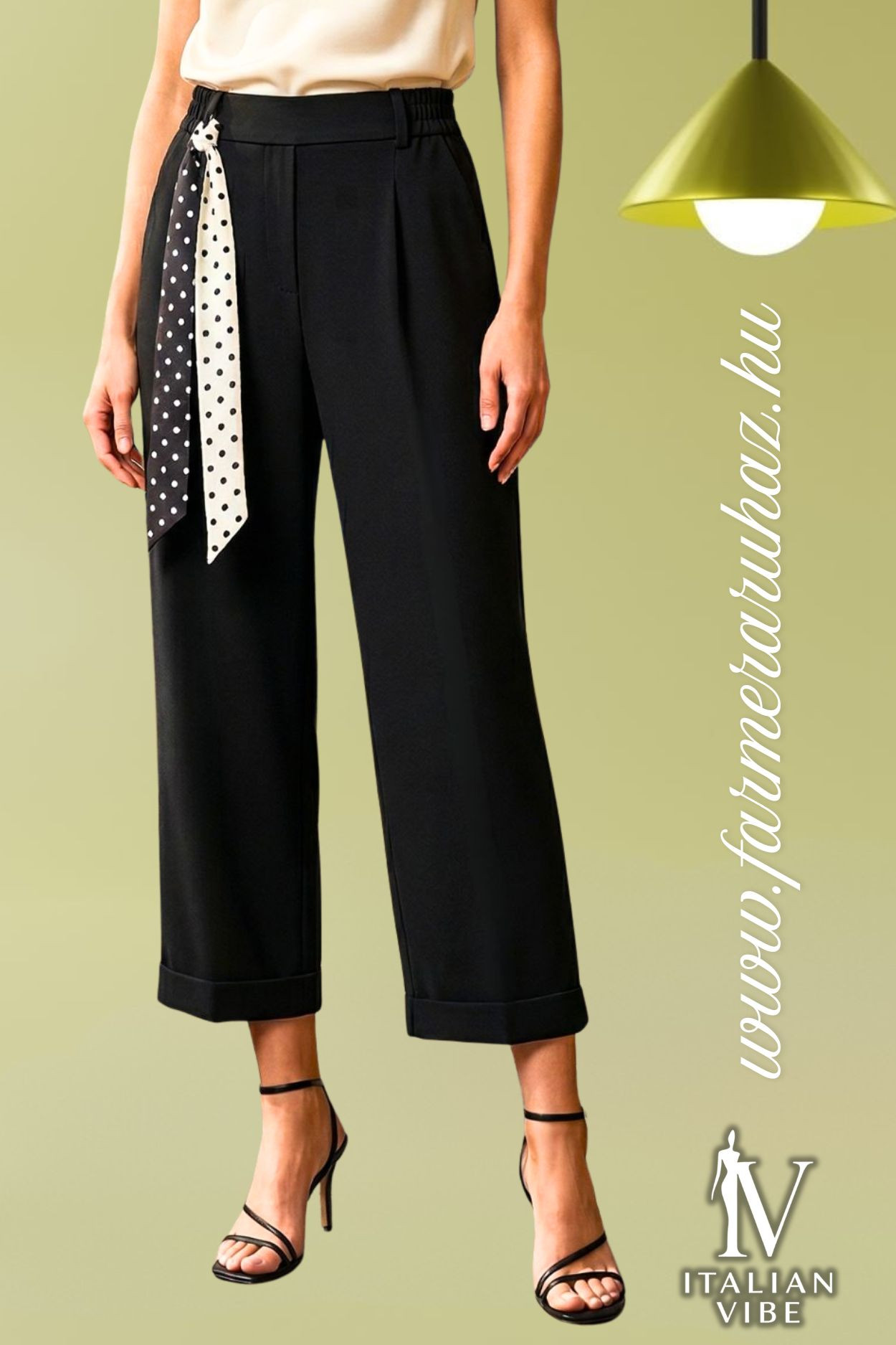 Italian Vibe - Barrel Fit fazonú - női elasztikus pamut vászon nadrág, fekete színben, gumírozott övbújtatós derékrésszel, svédzsebekkel, hozzátartozó díszkendővel.