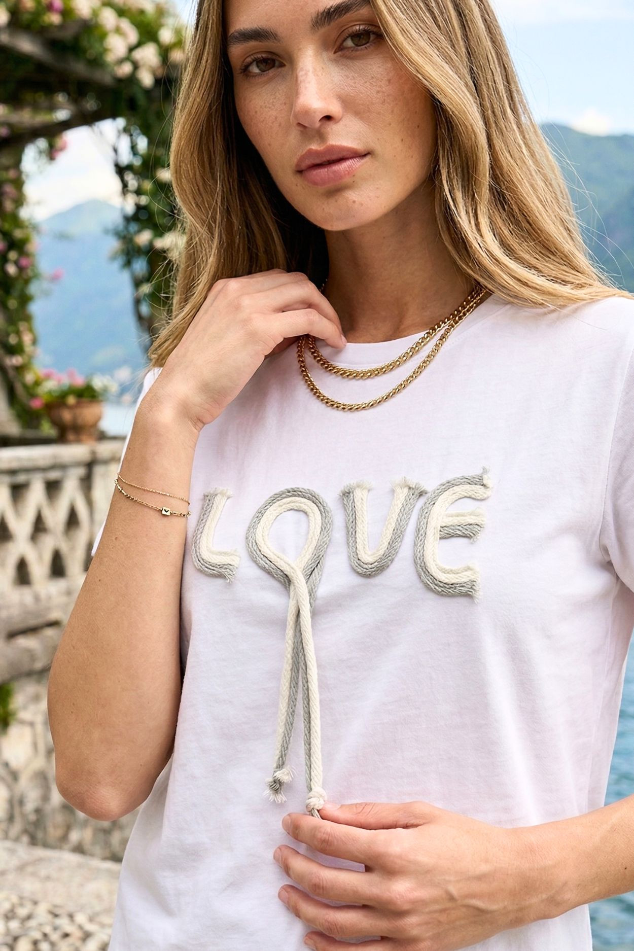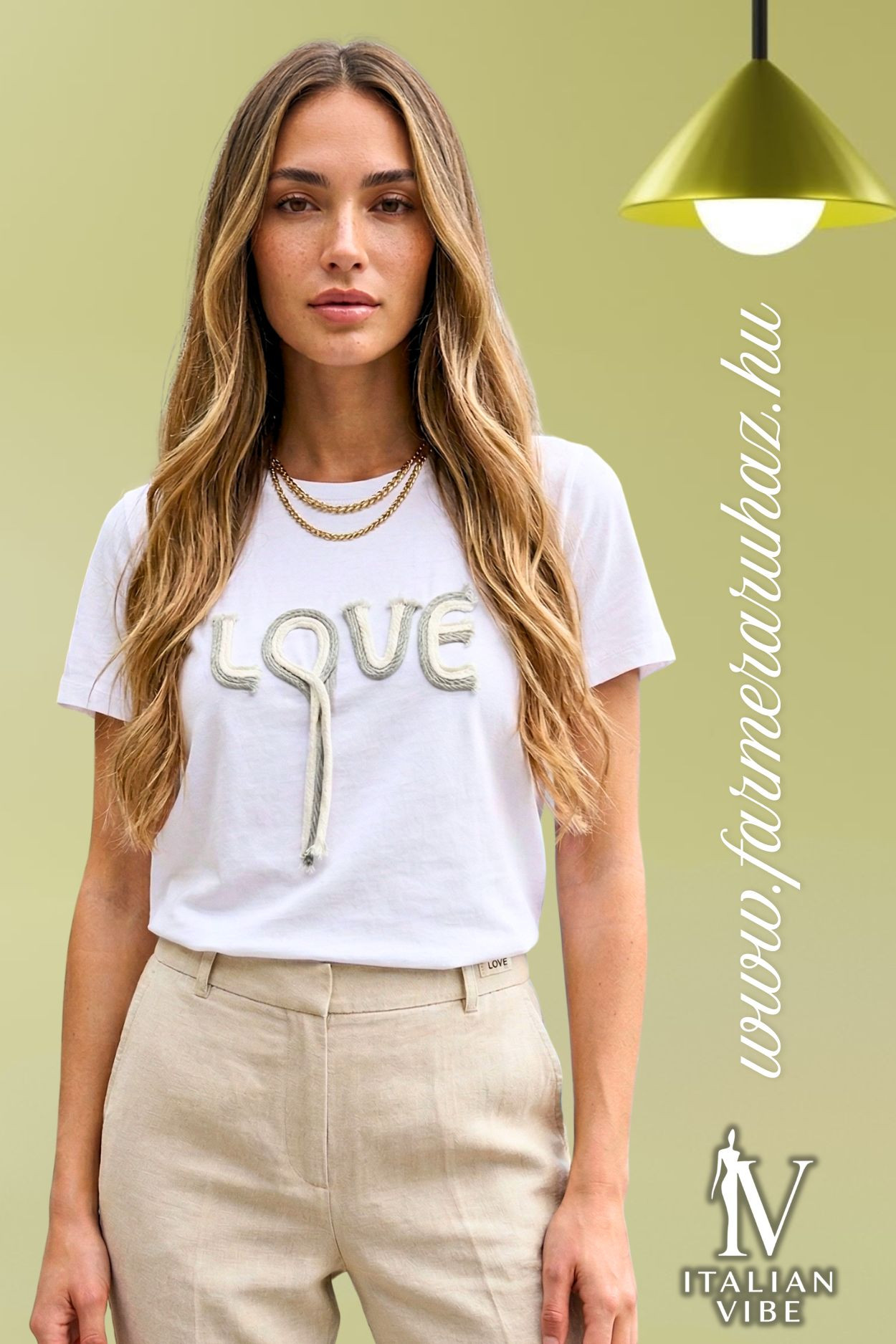 Italian Vibe lazább fazonú női póló, fehér színben. Visszahajtott ujjal, elején kötél felirattal.