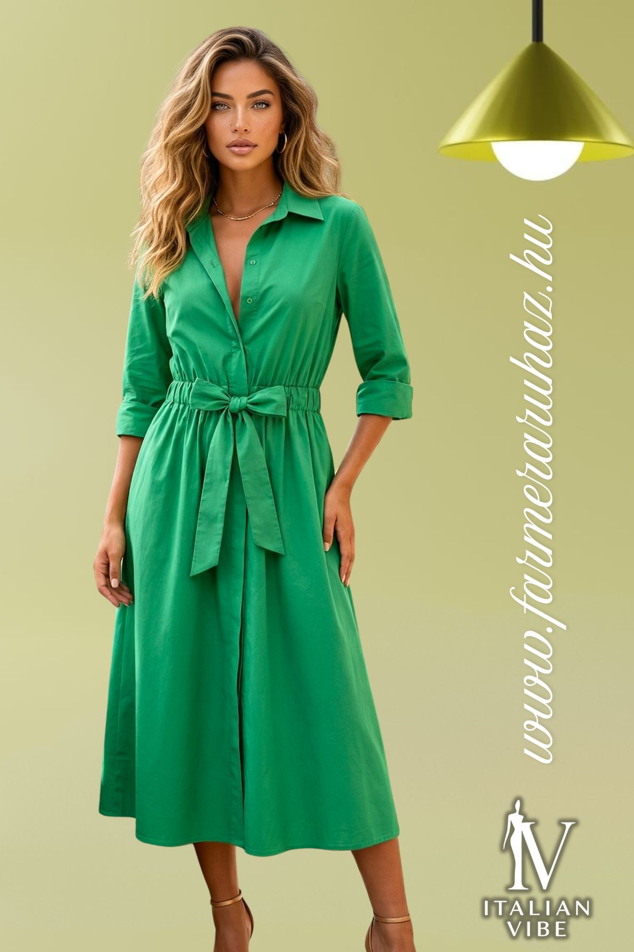Italian Vibe prémium női ingruha, zöld színben. Elején rejtett gombolással, húzott derekán megkötővel, oldalzsebekkel.
