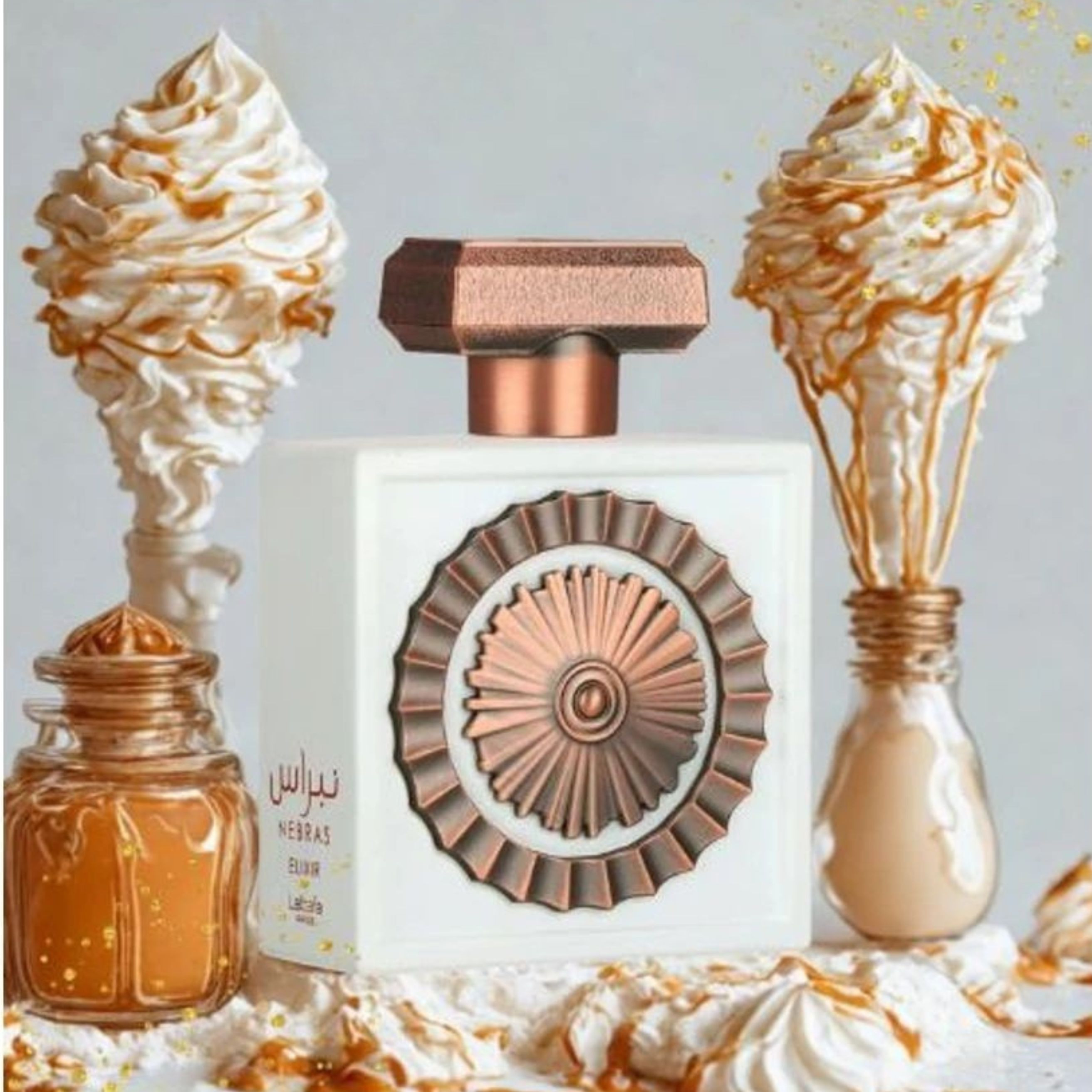Részletes Leírás: A Lattafa Nebras Elixir már a megjelenésével is elvarázsol, jelezve, hogy a prémium kategóriát képviseli. A flakon egy súlyos, arany és mélyvörös tónusú, elegáns üveg, melynek ívei a nőiességet és a selymességet szimbolizálják. A kupak masszív és díszes, tökéletesen zárja le az értékes, édes esszenciát. A parfüm egy rendkívül igényes, bársonyos belsővel ellátott, kemény falú díszdobozban pihen, ami már a kibontáskor a luxus élményét nyújtja – tökéletes és látványos ajándék bárkinek, aki szereti a különleges kényeztetést.