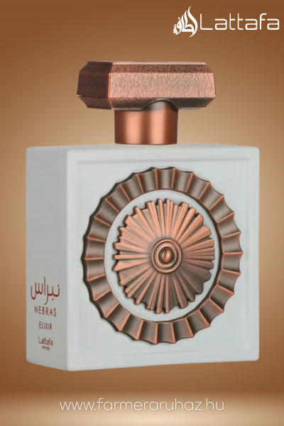 A leszáradás során a tonkabab és a meleg ámbra ad egy tartós, földes alapot, amit a cukor édessége tesz végtelenül selymessé. A Nebras Elixir nem illan el; az arab parfümgyártás csúcsát képviselve egész nap veled marad, és gondoskodik róla, hogy mindenki megforduljon utánad. Ha egy olyan parfümöt keresel, ami a boldogság és a vonzerő szobra, megtaláltad.