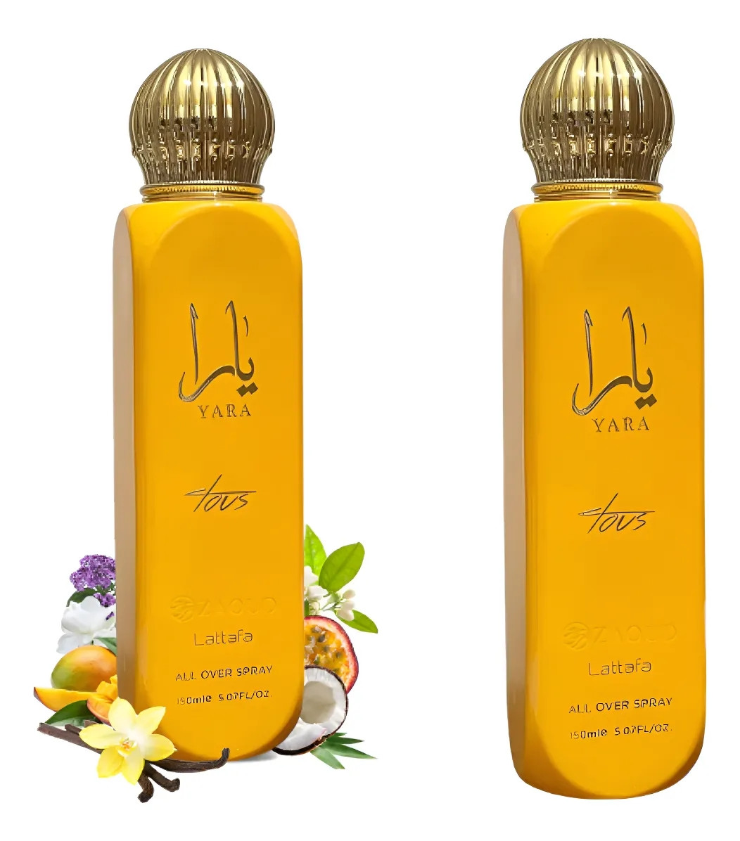 Rövid Leírás: A Lattafa Yara Tous All Over Spray a trópusi nyár és a gondtalan szabadság illata, most egy könnyedebb, permetezhető formában. Ez az illat a lédús mangó, a krémes kókusz és az egzotikus virágok robbanása, amely azonnal egy napsütötte tengerparti koktélbárba repít. Azoknak a hölgyeknek készült, akik imádják az édes, gyümölcsös és krémes aromákat, de a mindennapokban egy lágyabb, frissítőbb élményre vágynak a nehéz parfümök helyett. Olyan, mint egy hűsítő selyemkendő a bőrön: ragyogóvá tesz, energiát ad és ellenállhatatlanul finom aurát von köréd.