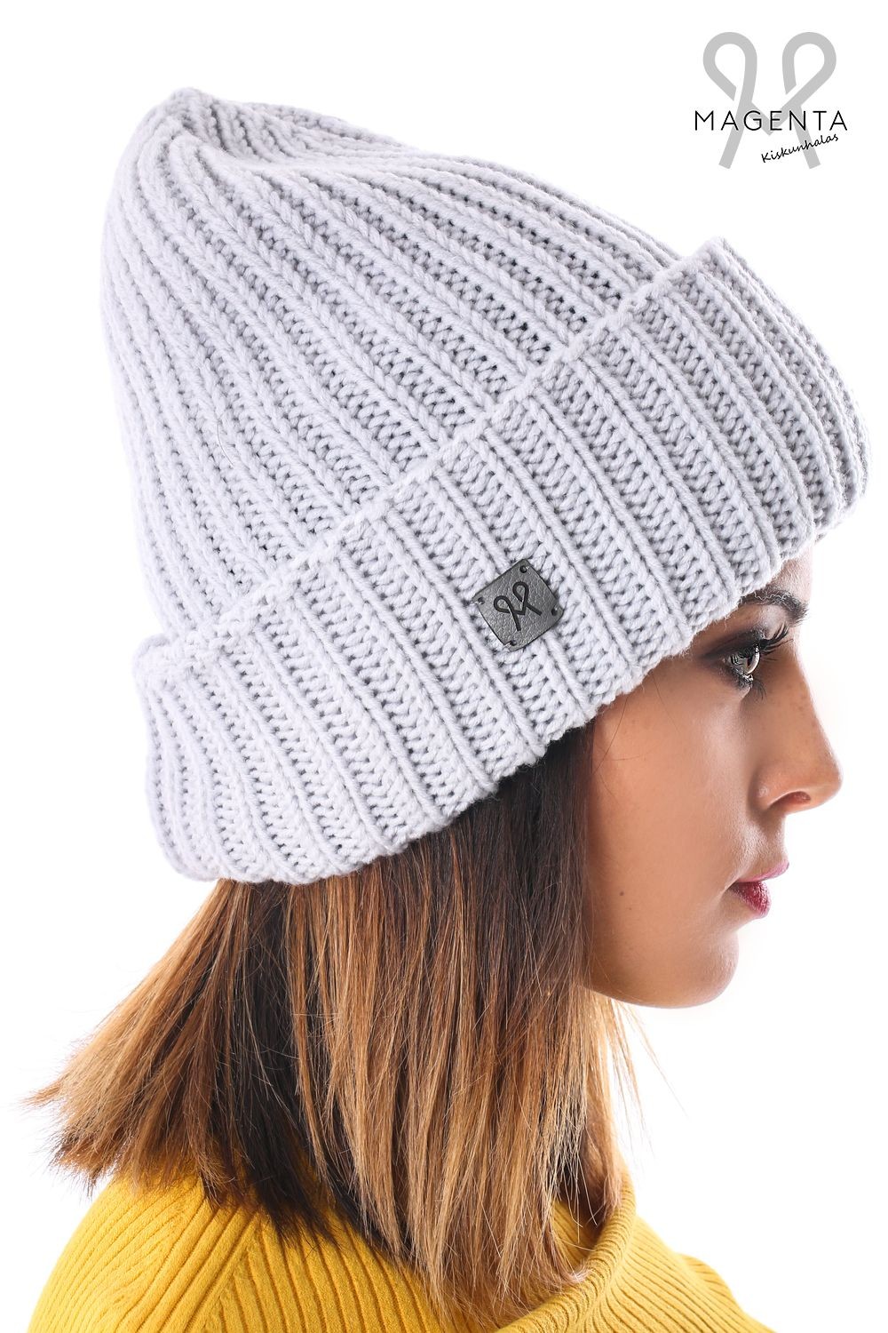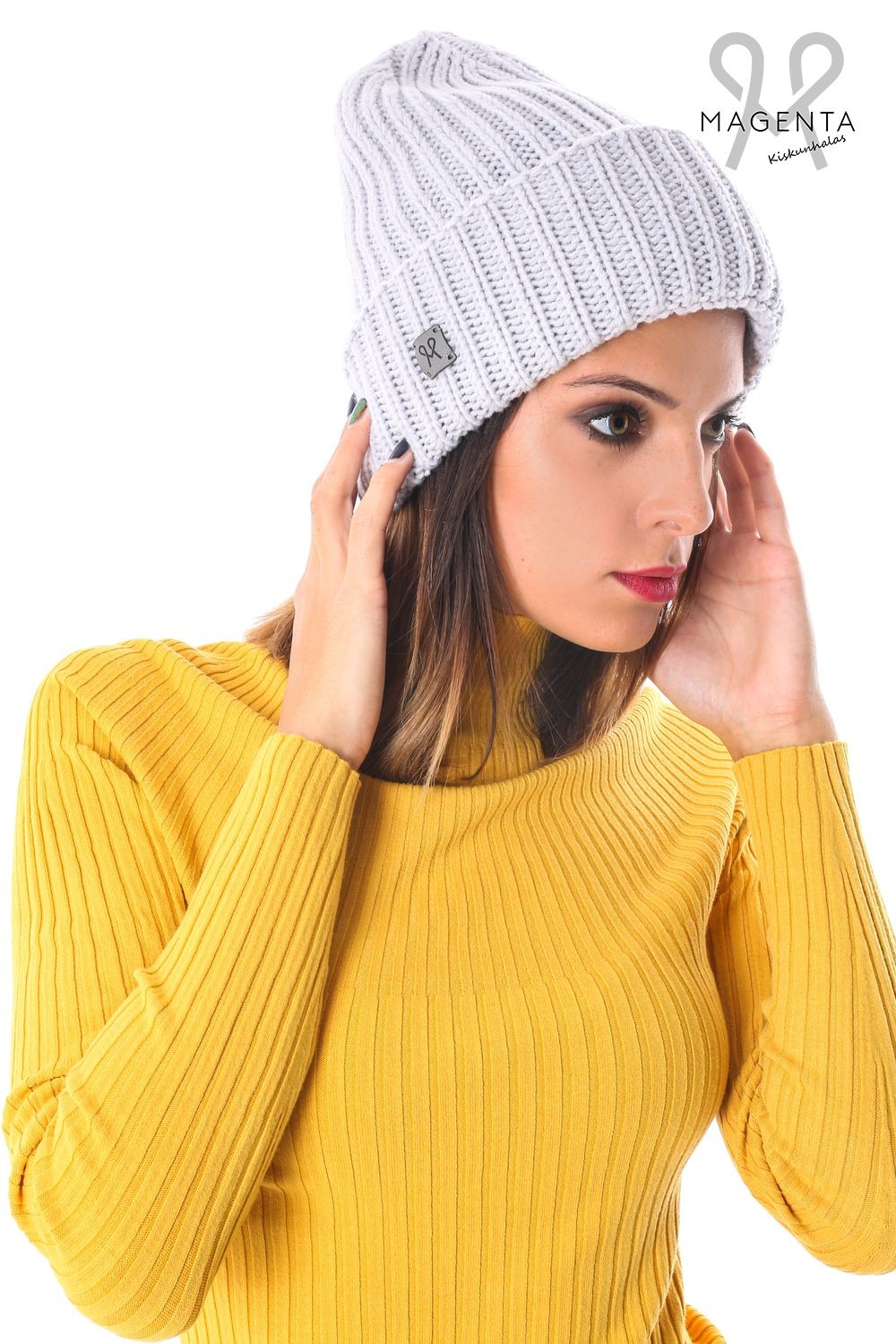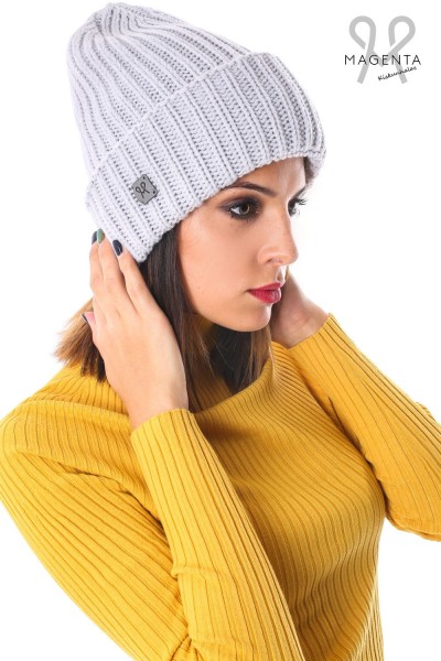 Magenta vastag kötött sapka, szürke színben, oldalán márkajelzéssel az őszi Magenta kollekcióból.