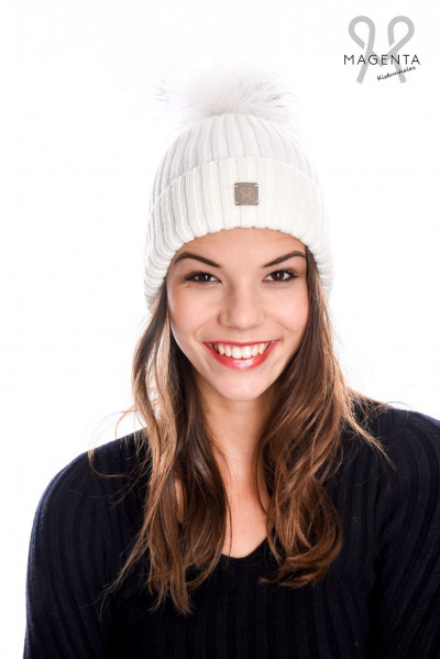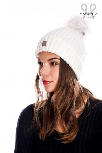 Magenta vastag kötött bolytos sapka, fehér színben, rávarrt márkajelzéssel az őszi Magenta kollekcióból.