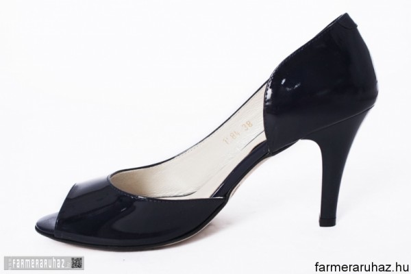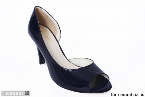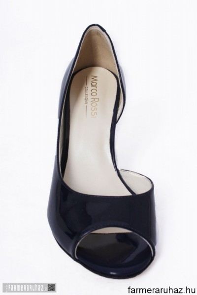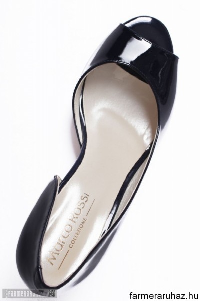 Újdonság! Európai gyártású Marco Rossi olasz bőr alapanyagú magassarkú cipő, fekete színű lakk bőrből, belső oldalán és elején nyitott, talpában nyomott márkajelzéssel. A termék a 2016. tavaszi Marco rossi cipőkollekció része.