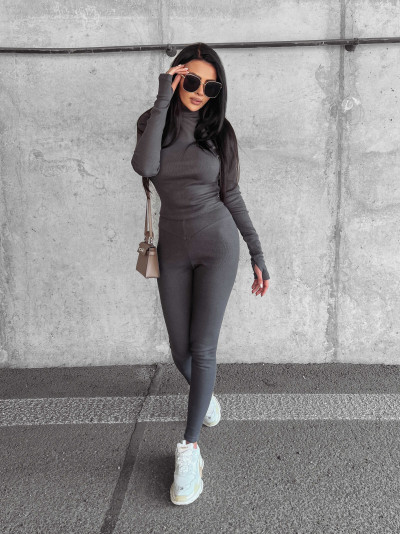O La Voga női bordás leggings antracit színben, extrán magasított gumis derékrésszel, karcsúsító szabással,oldalán hímzett márkajelzéssel.