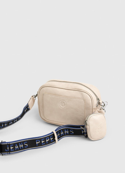 Pepe Jeans női oldaltáska műbőr anyagból krém színben, zipzáros záródással, belsejében egy zipzáros zsebbel, állítható márkajelzett vászon pánttal, hátuljában rekesszel, egy lecsatolható mini táskával, elején nyomott márkajelzéssel.