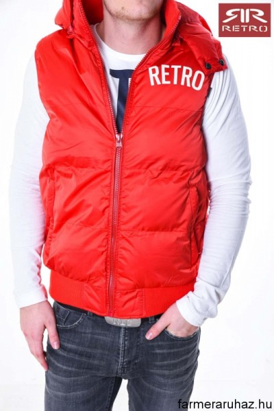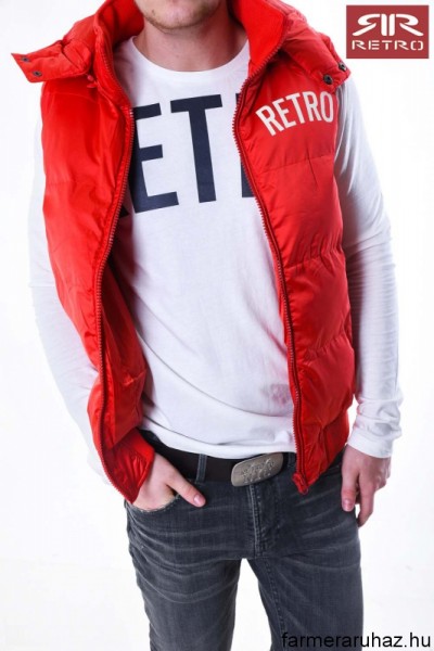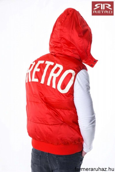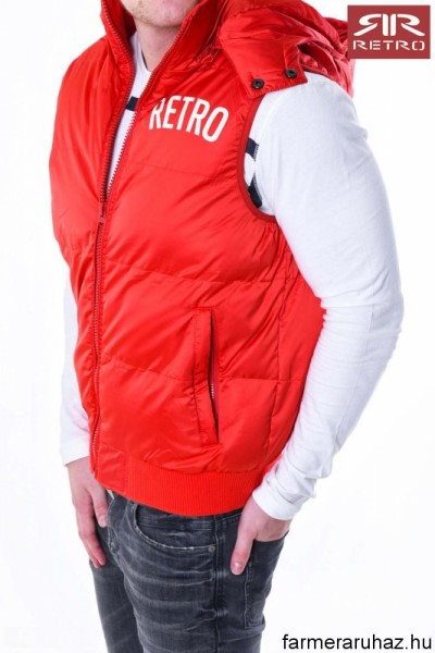 RetroJeans férfi kapucnis vastag mellény (Bombay Vest), piros (Red) színben, oldalzsebes, kapucnija lezippzárolható, hátán és mellén filmnyomott márkajelzéssel a 2017.őszi Retro Jeans kollekcióból.