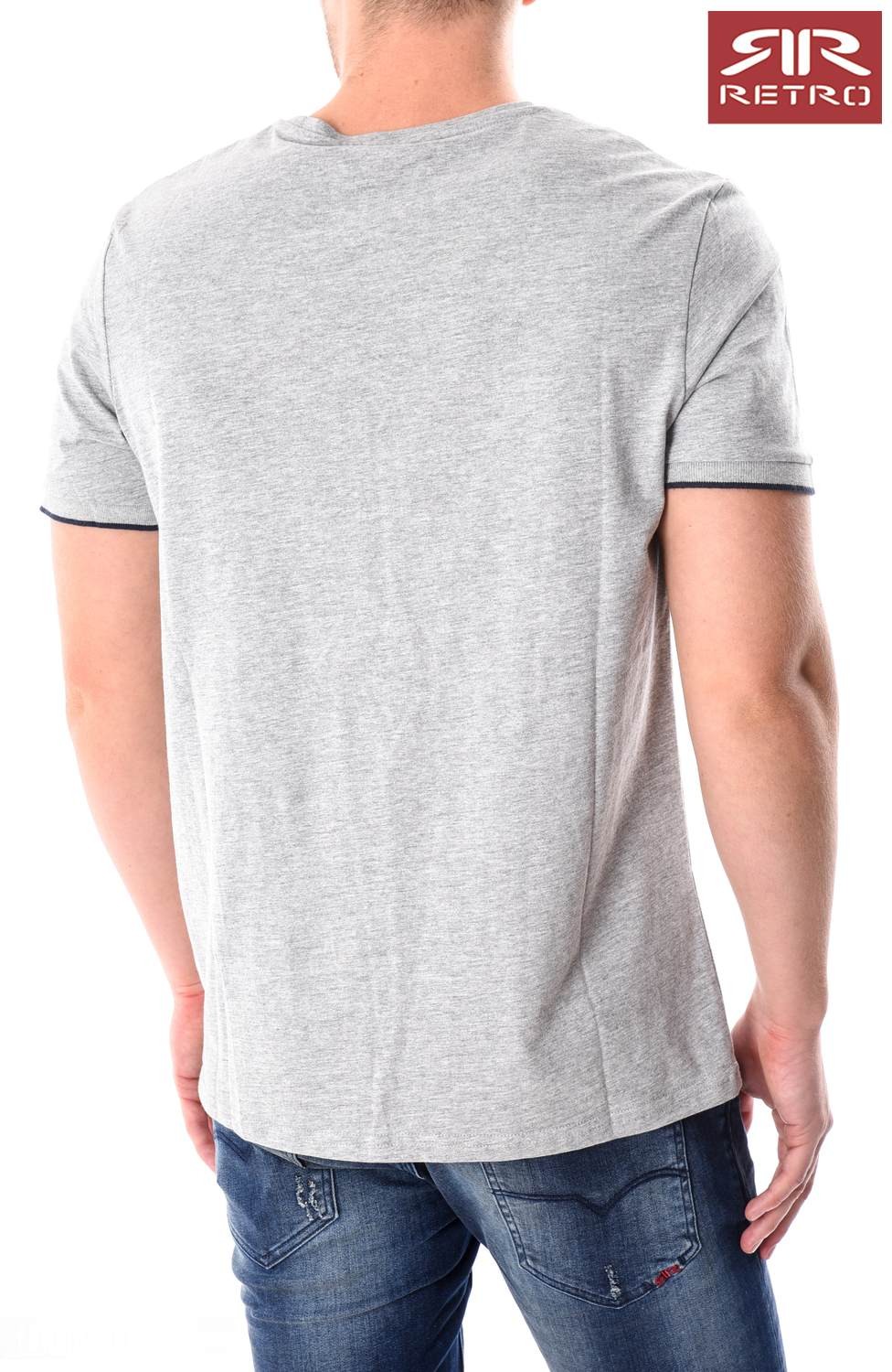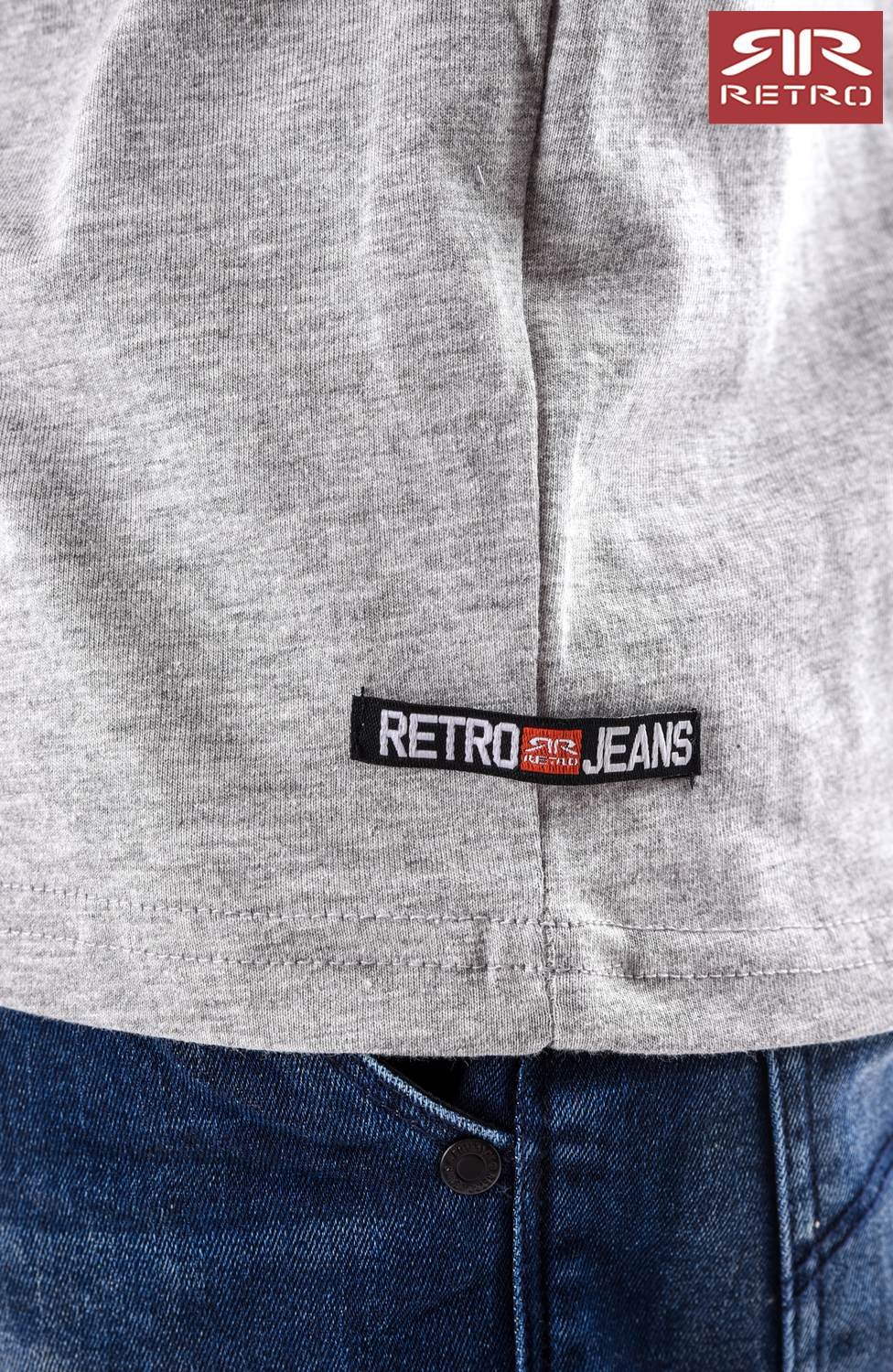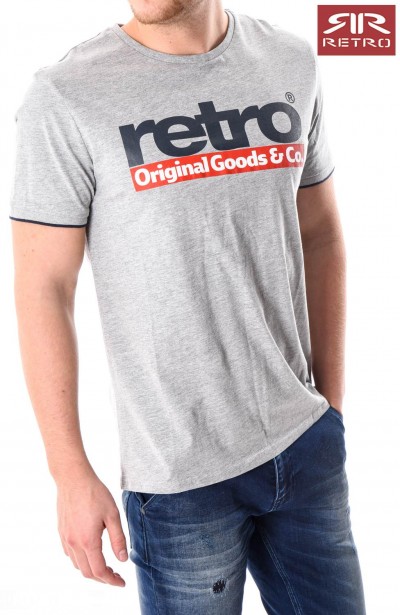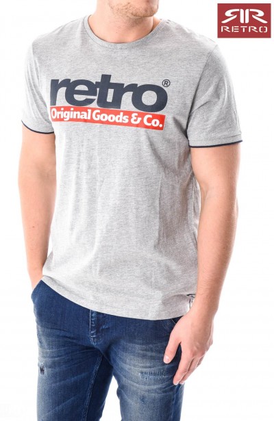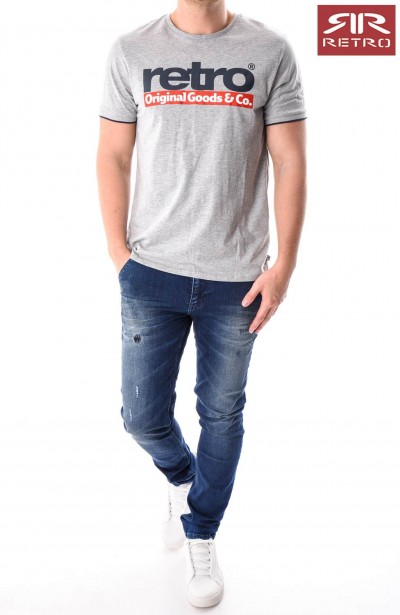 Retro férfi póló (Otto T-Shirt) szürke (Grey Melange) színben, kerek nyakkivágással, elején filmnyomott felirattal és márkajelzéssel, alján rávarrt márkajelzéssel az őszi Retro Jeans kollekcióból.