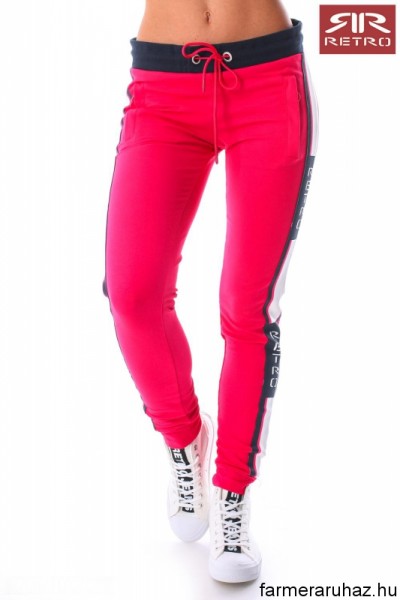 Retro Jeans női jogging nadrág (Berta P Jogging Bottom), pink, kék és fehér (Pink) színben, zipzáras oldalzsebes, dereka gumis és megköthető, alja passzés, szárán filmnyomott márkajelzéssel az őszi Retro Jeans kollekcióból. XS: Derékbőség: 36 cm, Csipőbőség: 41,5 cm, Ülep: 20,5 cm, Comb: 23,5 cm, Hossz: 91 cm S: Derékbőség: 37 cm, Csipőbőség: 45,5 cm, Ülep: 19,5 cm, Comb: 23,5 cm, Hossz: 93 cm M: Derékbőség: 39,5 cm, Csipőbőség: 46 cm, Ülep: 22 cm, Comb: 25 cm, Hossz: 94 cm L: Derékbőség: 43 cm, Csipőbőség: 46 cm, Ülep: 22 cm, Comb: 27,5 cm, Hossz: 95 cm XL: Derékbőség: 45 cm, Csipőbőség: 51 cm, Ülep: 22 cm, Comb: 29 cm, Hossz: 96 cm A kiskereskedelmi értékesítés miatt, a napközben üzleteinkben eladott termékeket, csak a nap végén egyeztetjük webáruházunkban, így az ebből adódó esetleges készlethiányért felelősséget nem vállalunk, termékeink a készlet erejéig állnak rendelkezésre. Esetleges készlethiányról 1 munkanapon belül e-mailben értesítjük! Ezt az Retro Jeans modellt 2 munkanapon belül (sürgős, akár 1 munkanapos kiszállítás megoldhatóságáról érdeklődjön telefonon)szállítjuk házhoz.