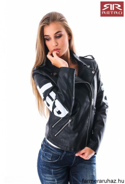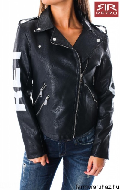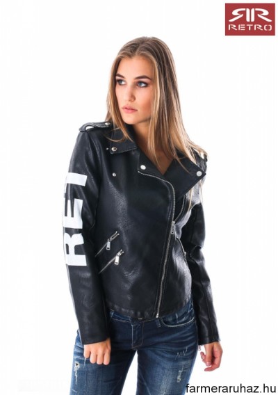 RetroJeans női (Charlie Jacket) bőrhatású dzseki, fekete (Black) színben, zipzáras zsebekkel, elején féloldalas zipzáras, ujján márkajelzéssel az őszi Retro Jeans kollekcióból.